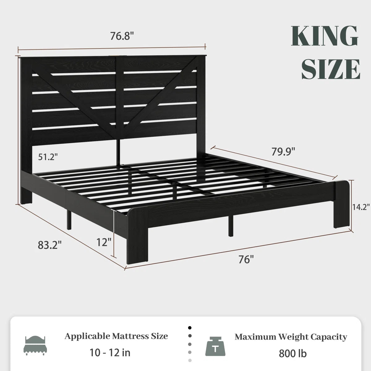 -Farmhouse & Classic: The bed frame features a simple classic barn door headboard and footboard design, and the exquisite wood grain surface adds a rustic charm, making it a perfect match for any decor.