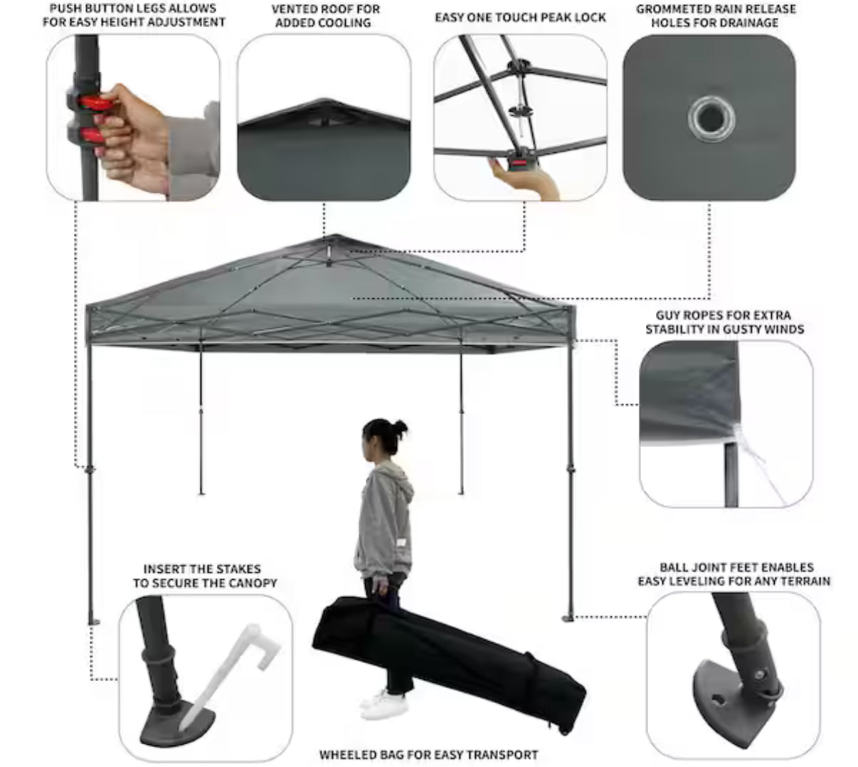 Everbilt 10 ft. x 10 ft. Grey Instant Canopy Pop Up Tent!! BRAND NEW!!