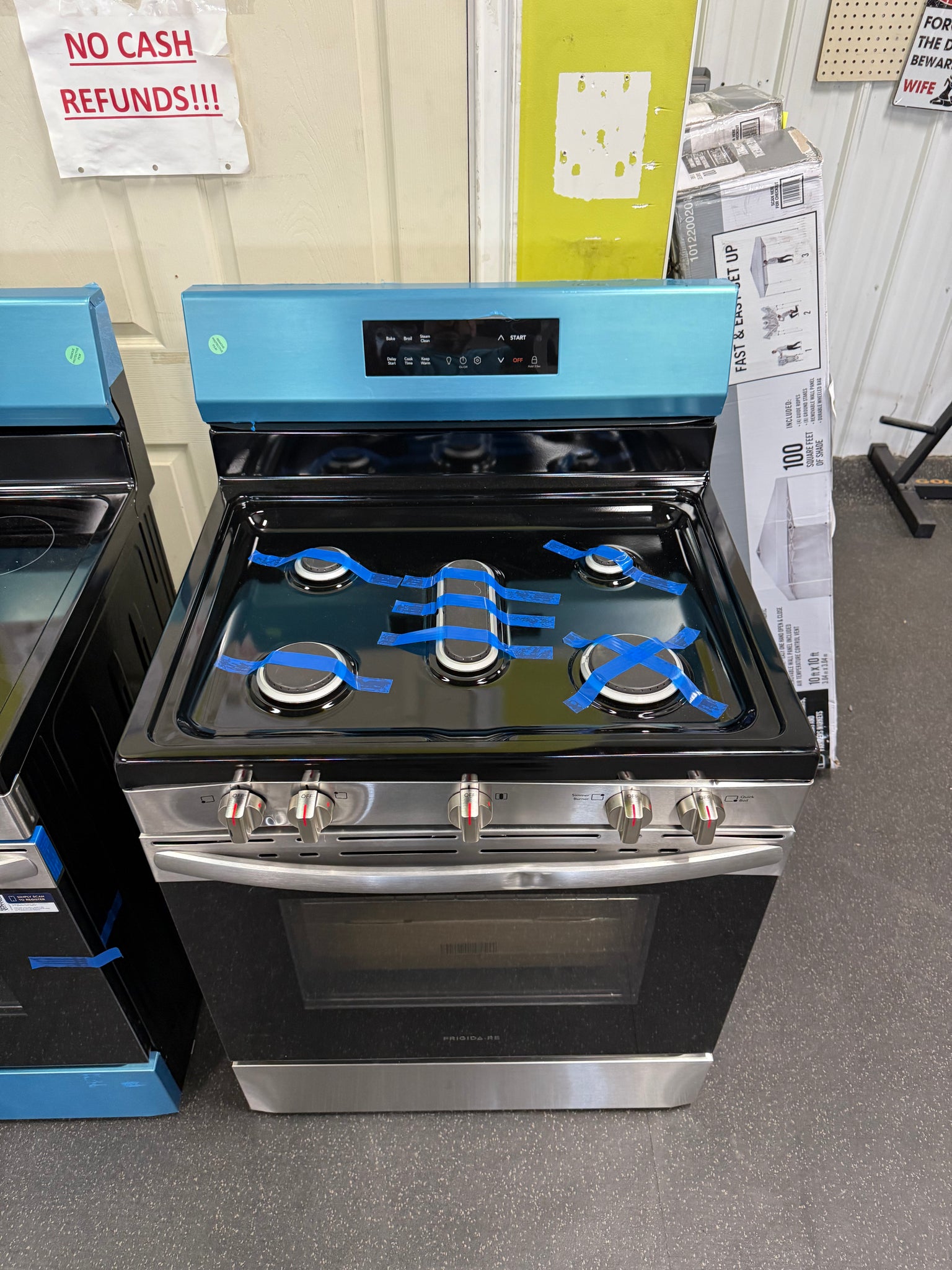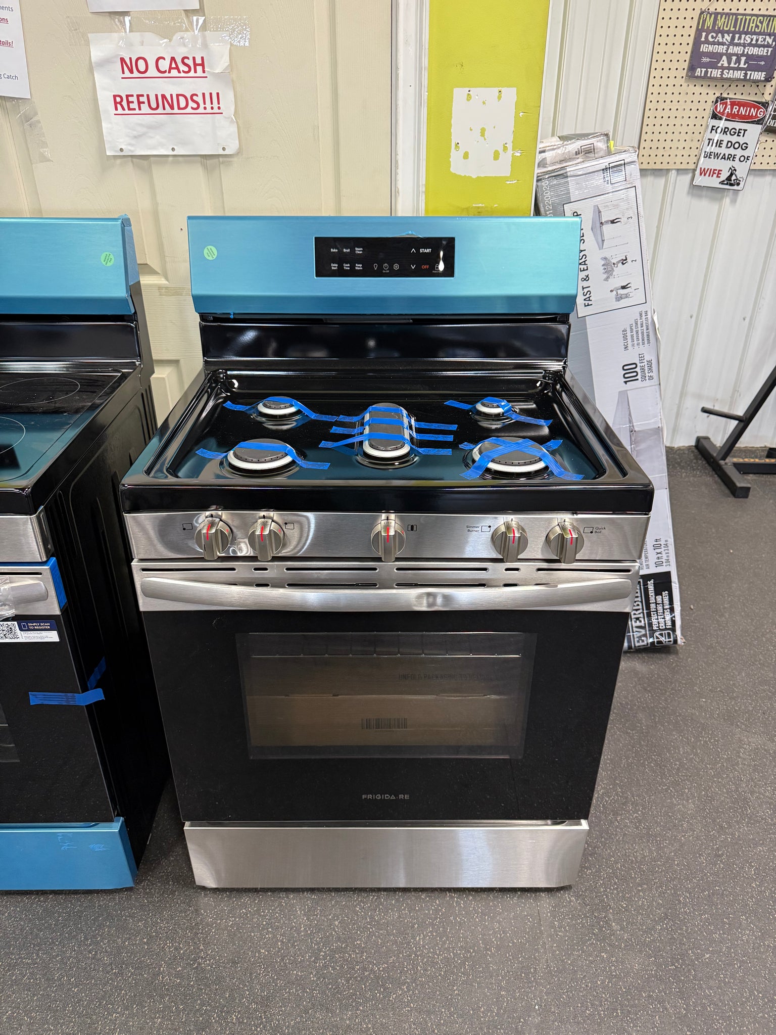 Frigidaire 30 in 5 Burner Freestanding Gas Range in Stainless Steel with Quick Boil and Steam Clean! (NEW - DENTED SIDES/HANDLE) - (GAS STOVE!)