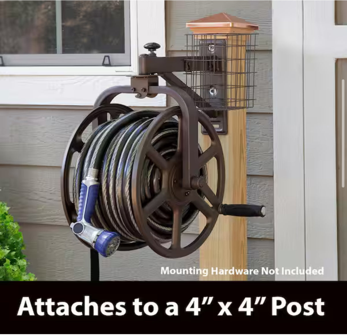 Liberty Garden Single Arm Navigator Rotating Garden Hose Reel with Storage Basket, Bronze!! NEW IN BOX!!