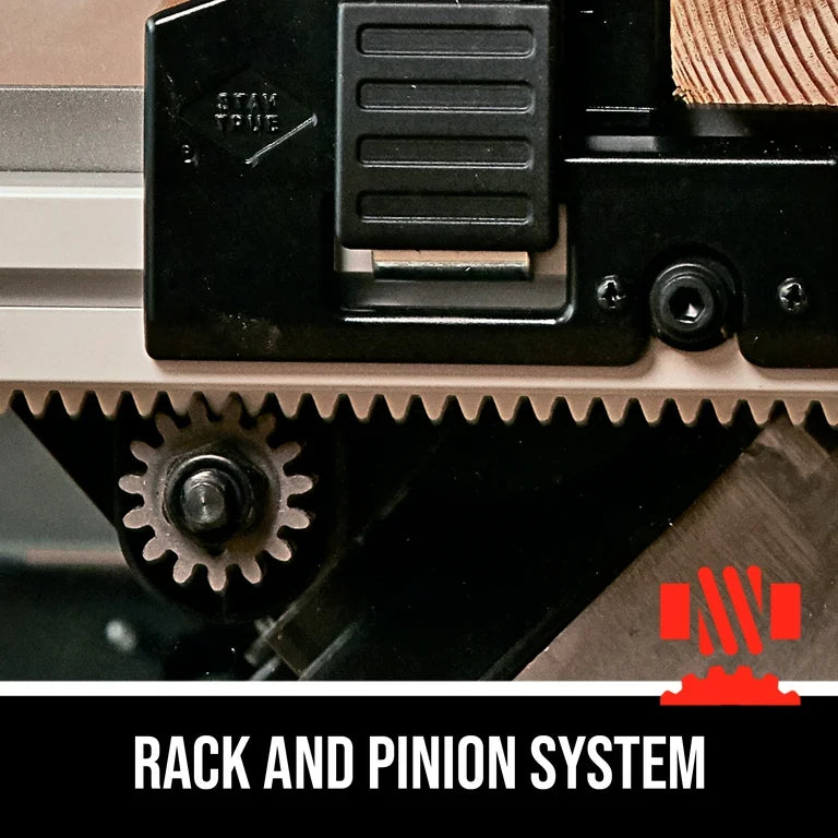 -Accurate Cuts: Precision Rack and Pinion fence system for quick and smooth fence adjustments