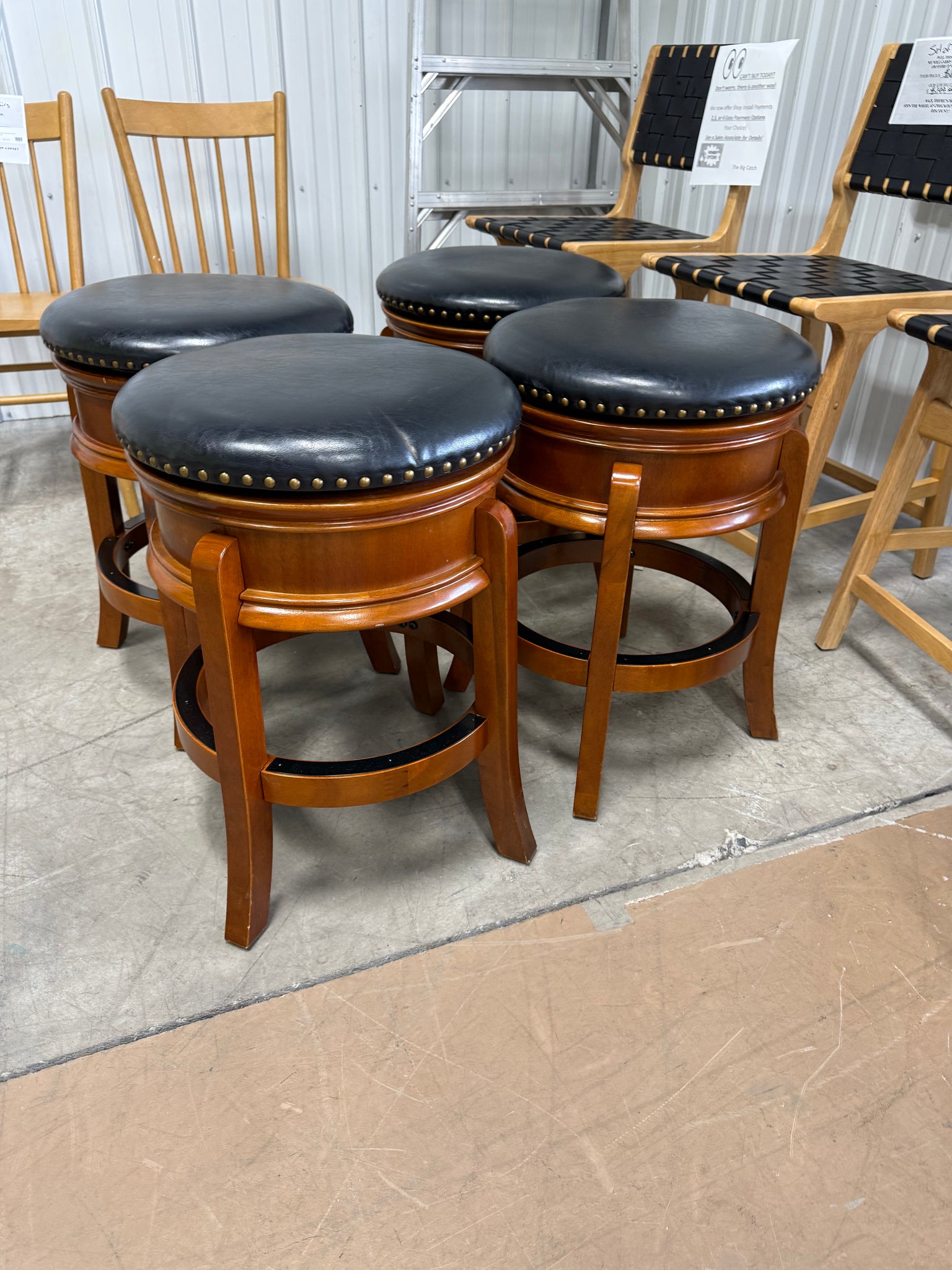 24" Hamilton Swivel Counter Height Barstool Brandy - Boraam: Hardwood, Faux Leather, Nailhead Trim, Set of 4! (NEW - MINOR SCRATCHES)