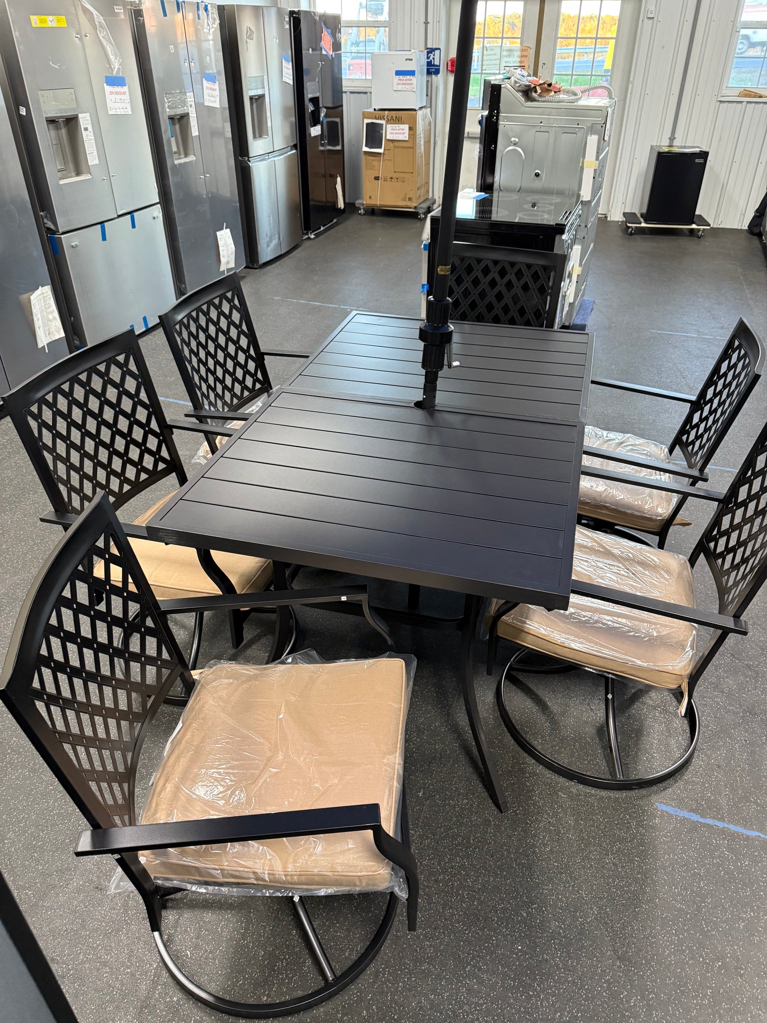 -Whats included: 6 Swivel Dining Chairs - 1 Dining Table - One Umbrella!