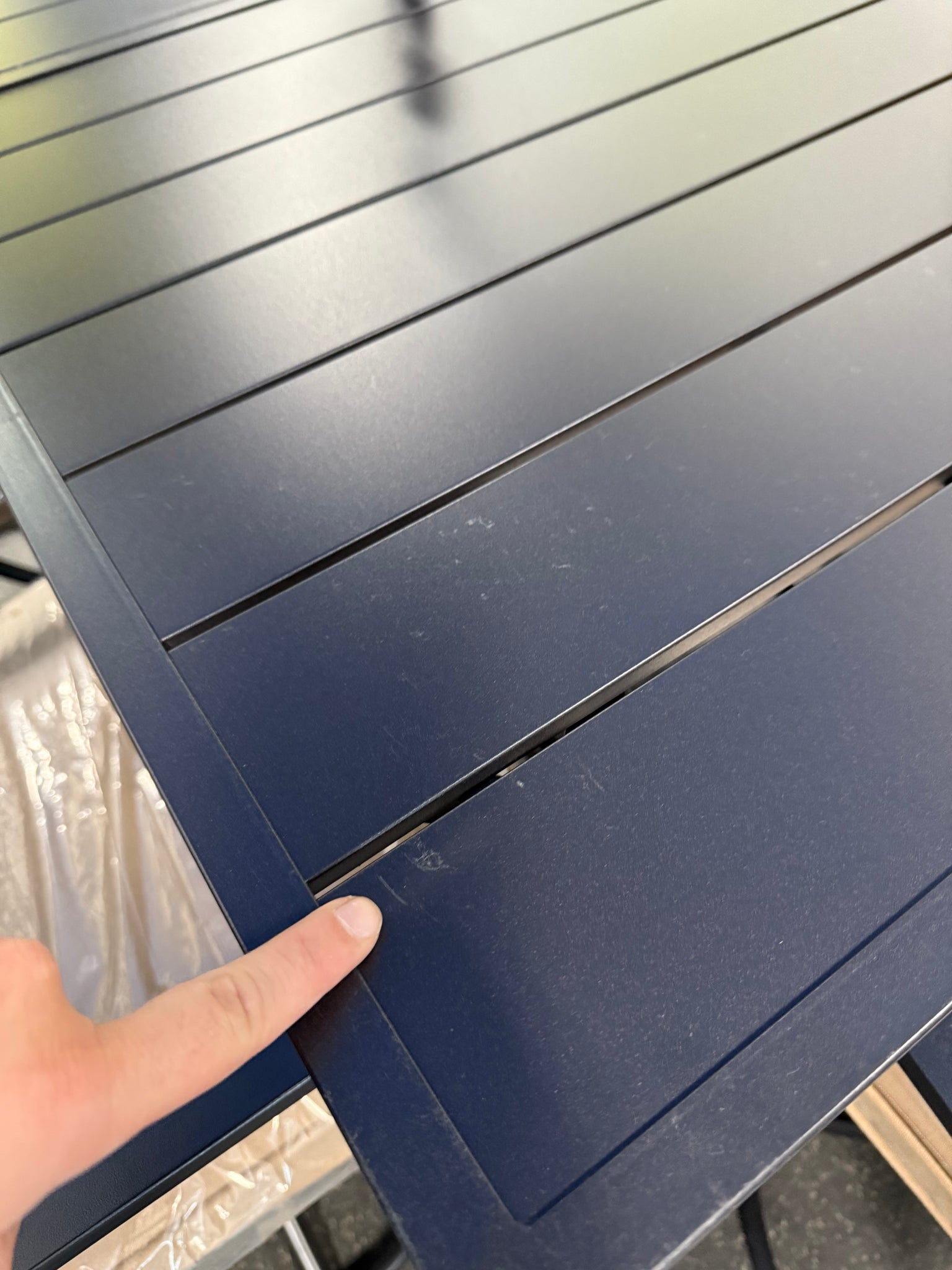 -Brand new and assembled, table has very small scratches, photos shown