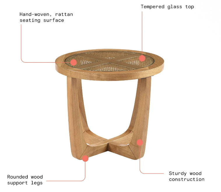Beautiful Rattan & Glass Side Table with Solid Wood Frame by Drew Barrymore, Warm Honey Finish!! NEW IN BOX!!