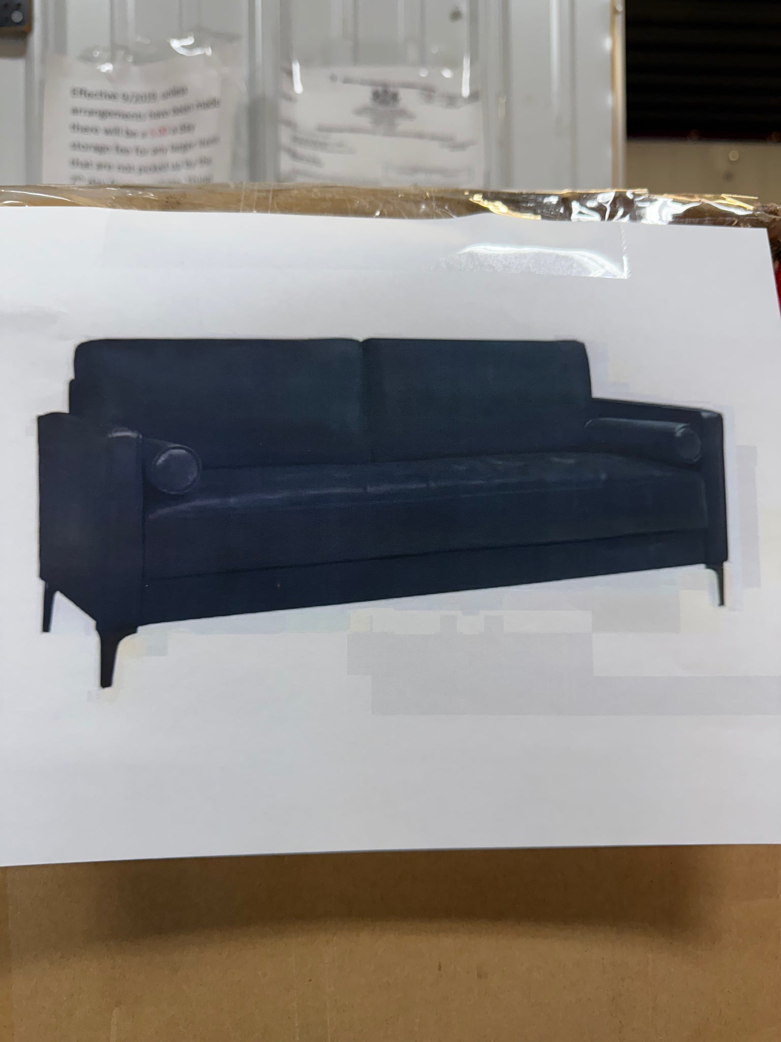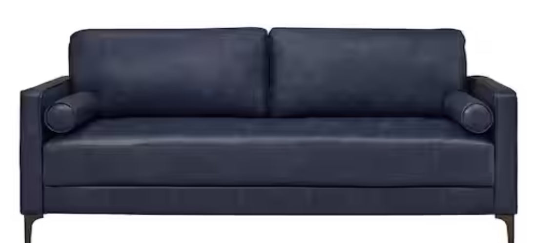 Goodwin 75.6 in. Mid-Century Modern Square Arm Faux Leather Sofa in Navy Blue! (NEW IN BOX)