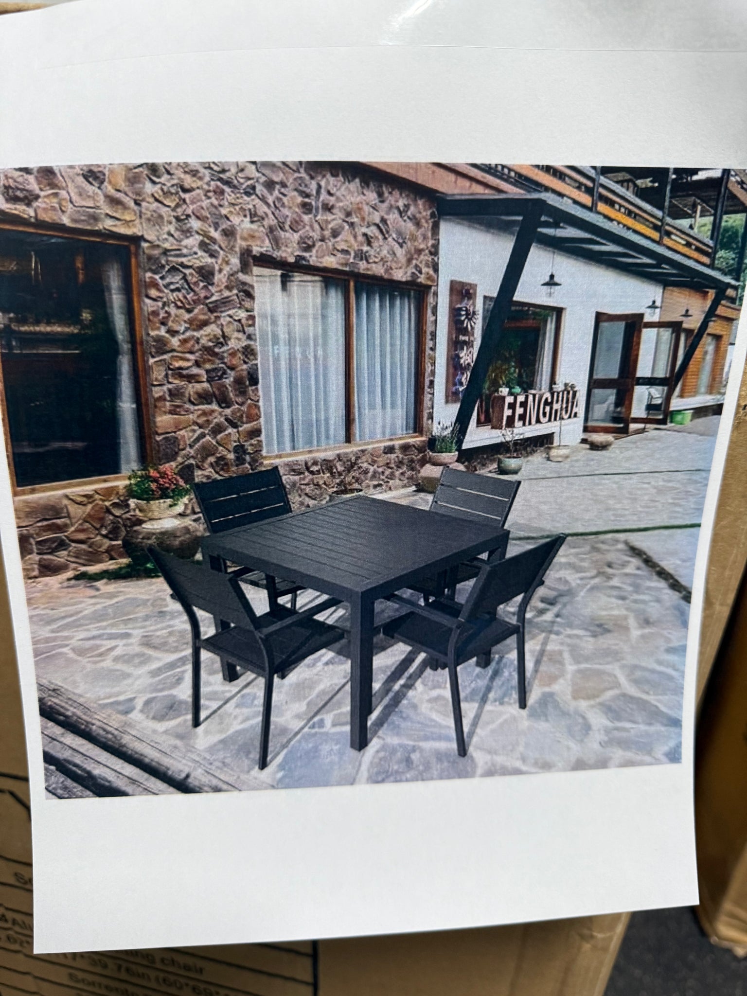 Infinity Sorrento 5 Piece Black Square Aluminum Outdoor Dining Table Set! (NEW IN 2 BOX’S)