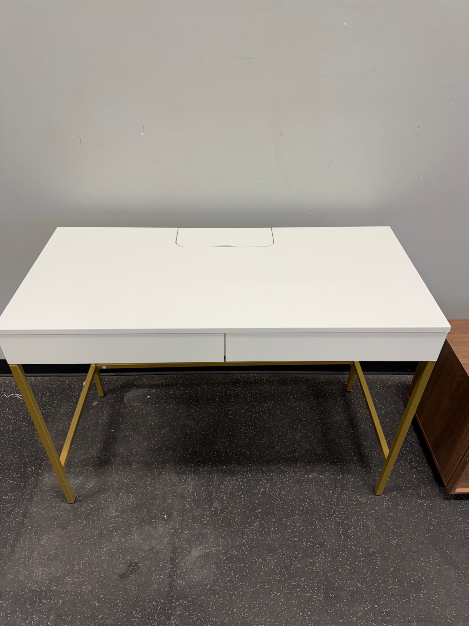 Loring Wood Writing Desk with Drawers and Charging Station, White! (NEW & ASSEMBLED)