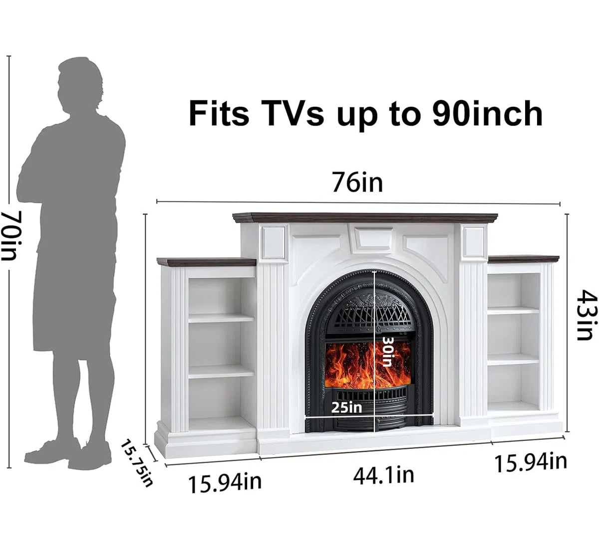 NO FIRE BOX! - 76”W Mantel, Wooden Freestanding for TVs up to 90"! (NEW IN BOX - MISSING FIREPLACE/BOX)