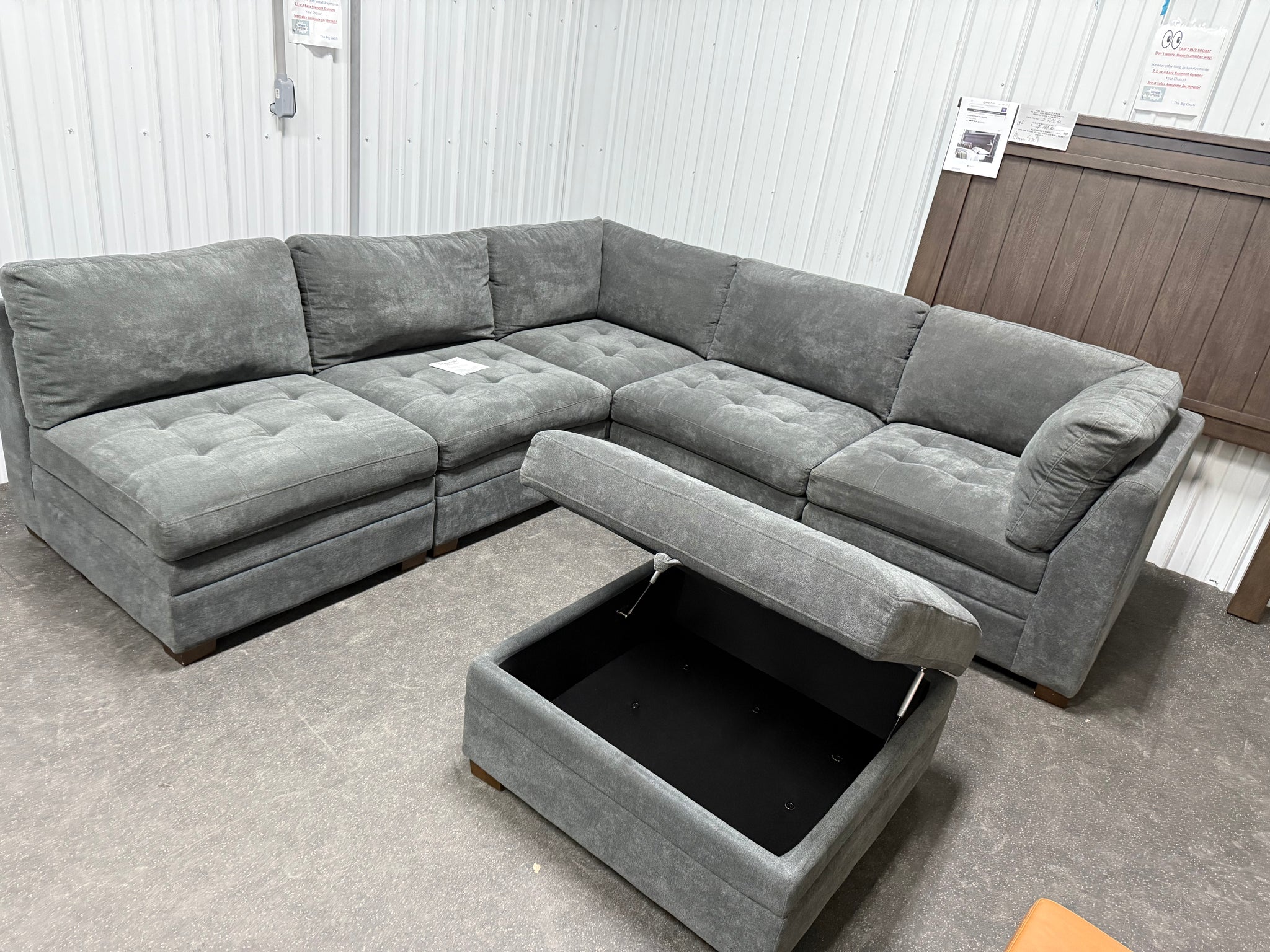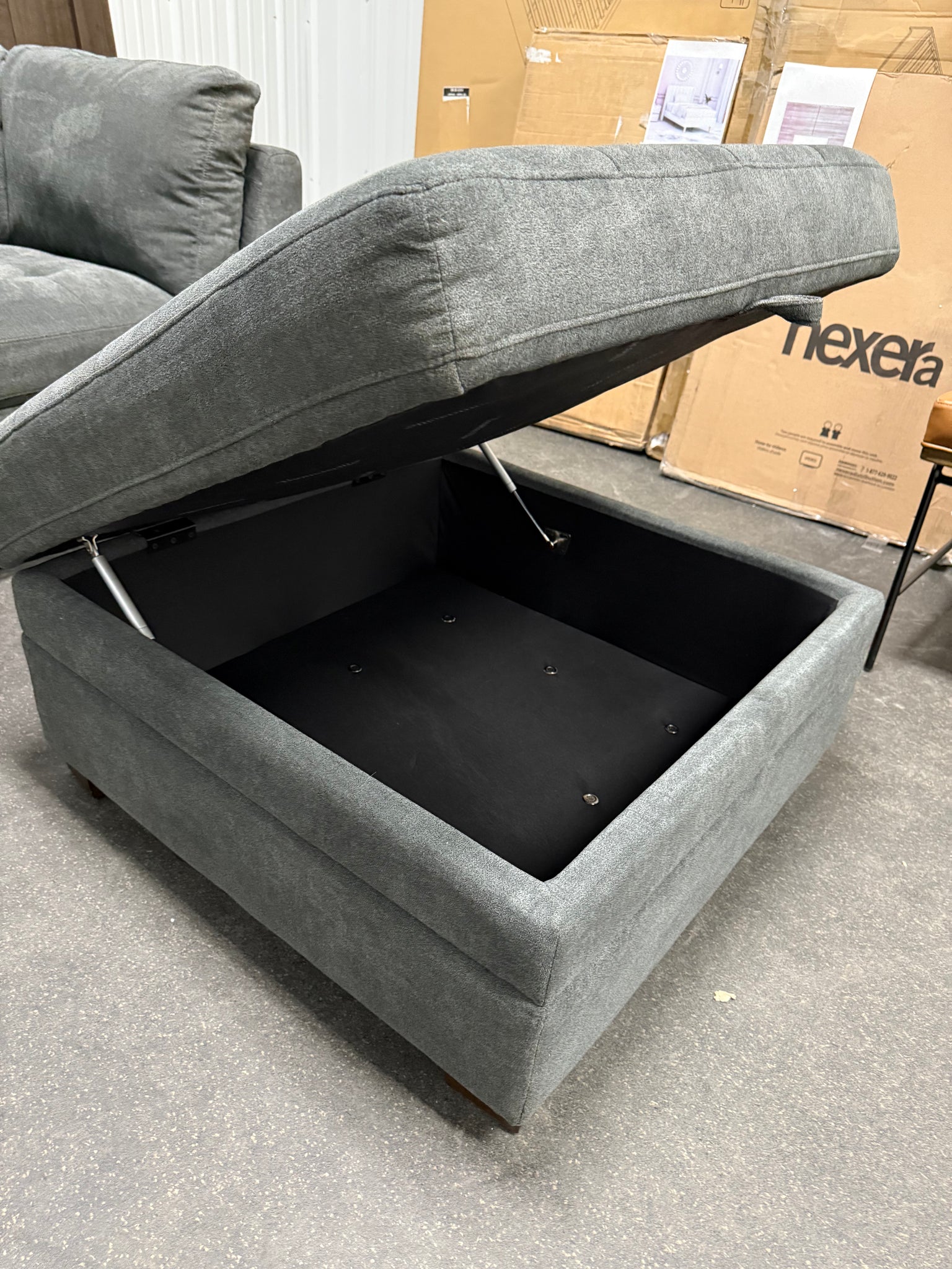 - Ottoman allows for generous storage space