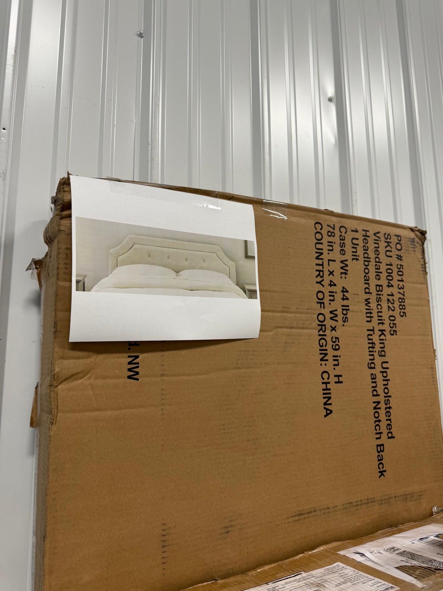 Vinedale Biscuit Beige Upholstered King Headboard with Notch Back and Tufting (77.8 in W. X 58.7 in H.)! (NEW IN BOX)