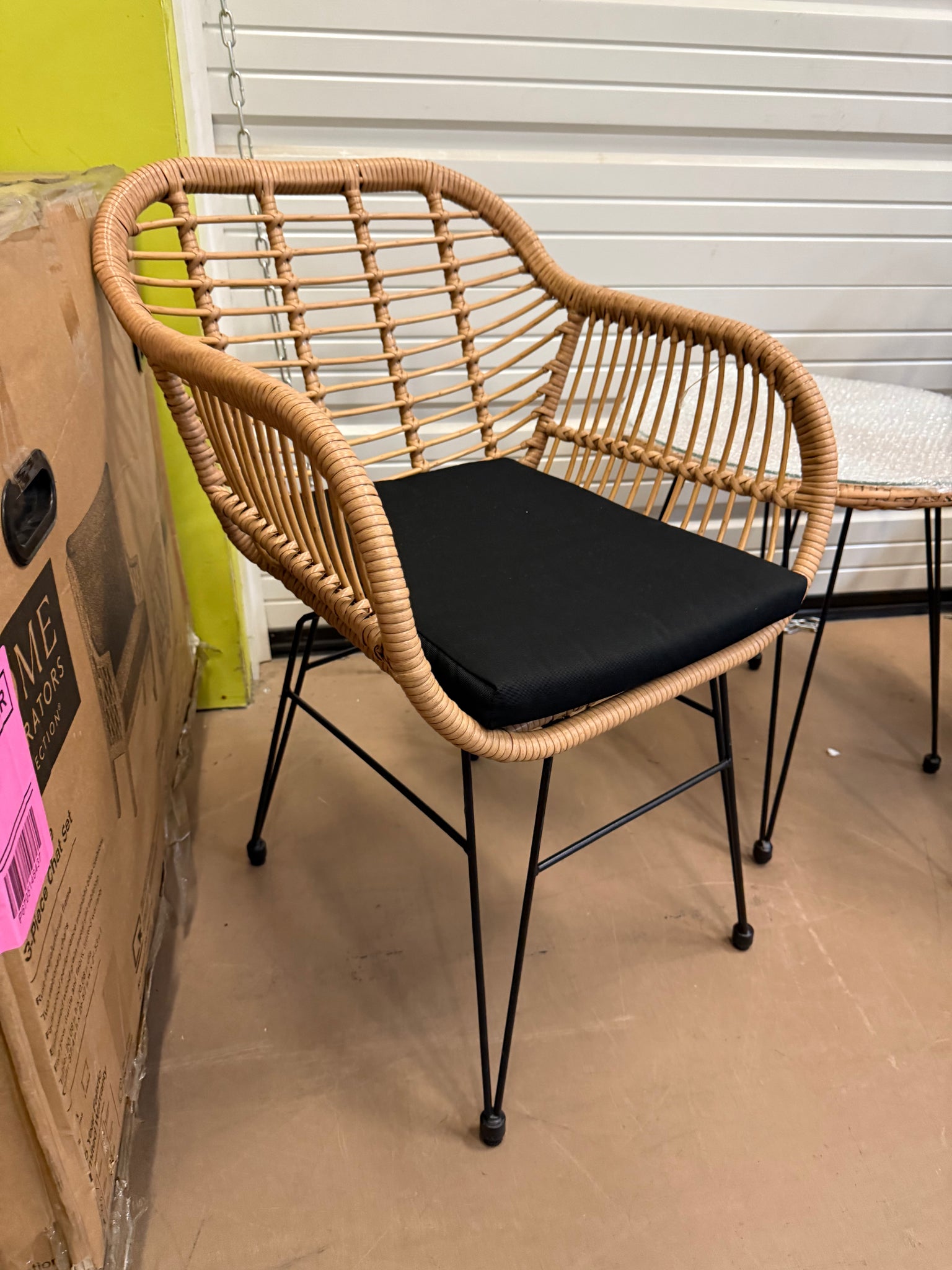 Winado 3-Piece Wicker Outdoor Bistro Set with Transparent Glass Table and Chair Seat Cushion! (NEW & ASSEMBLED)