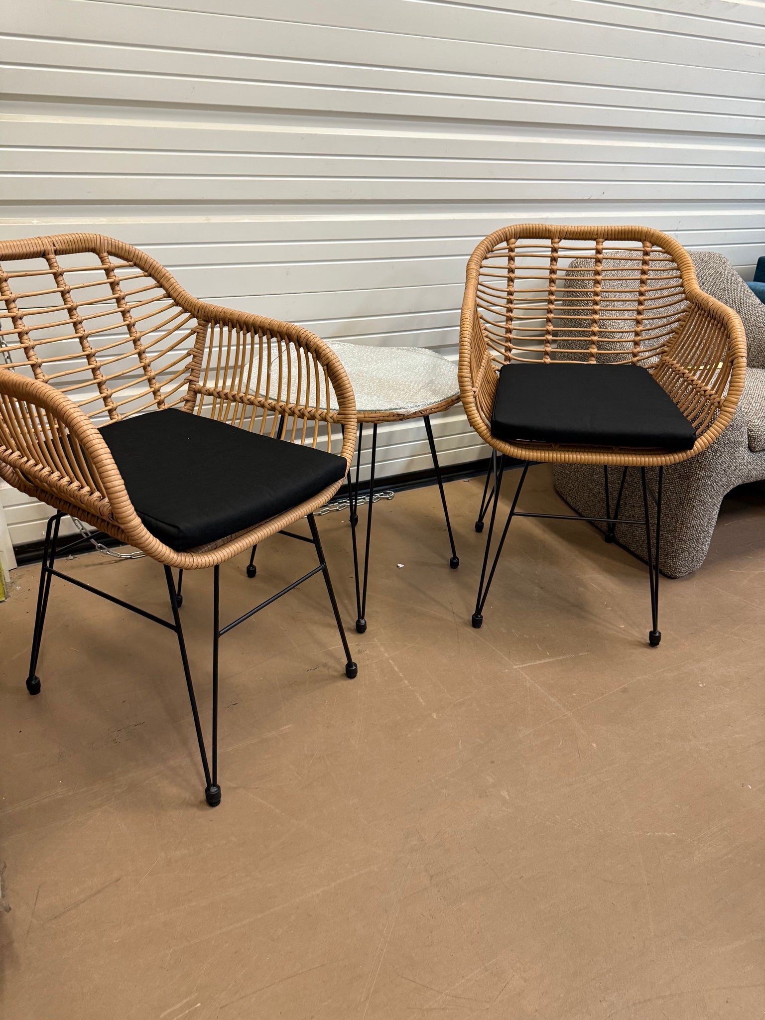 -Modern design - with clean lines contrasted perfectly by its round edges, our rattan chat set is the ideal modern accessory for your outdoor space, finished with thin angled legs, this set not only offers a sleek, minimalistic look but also provides a stable structure