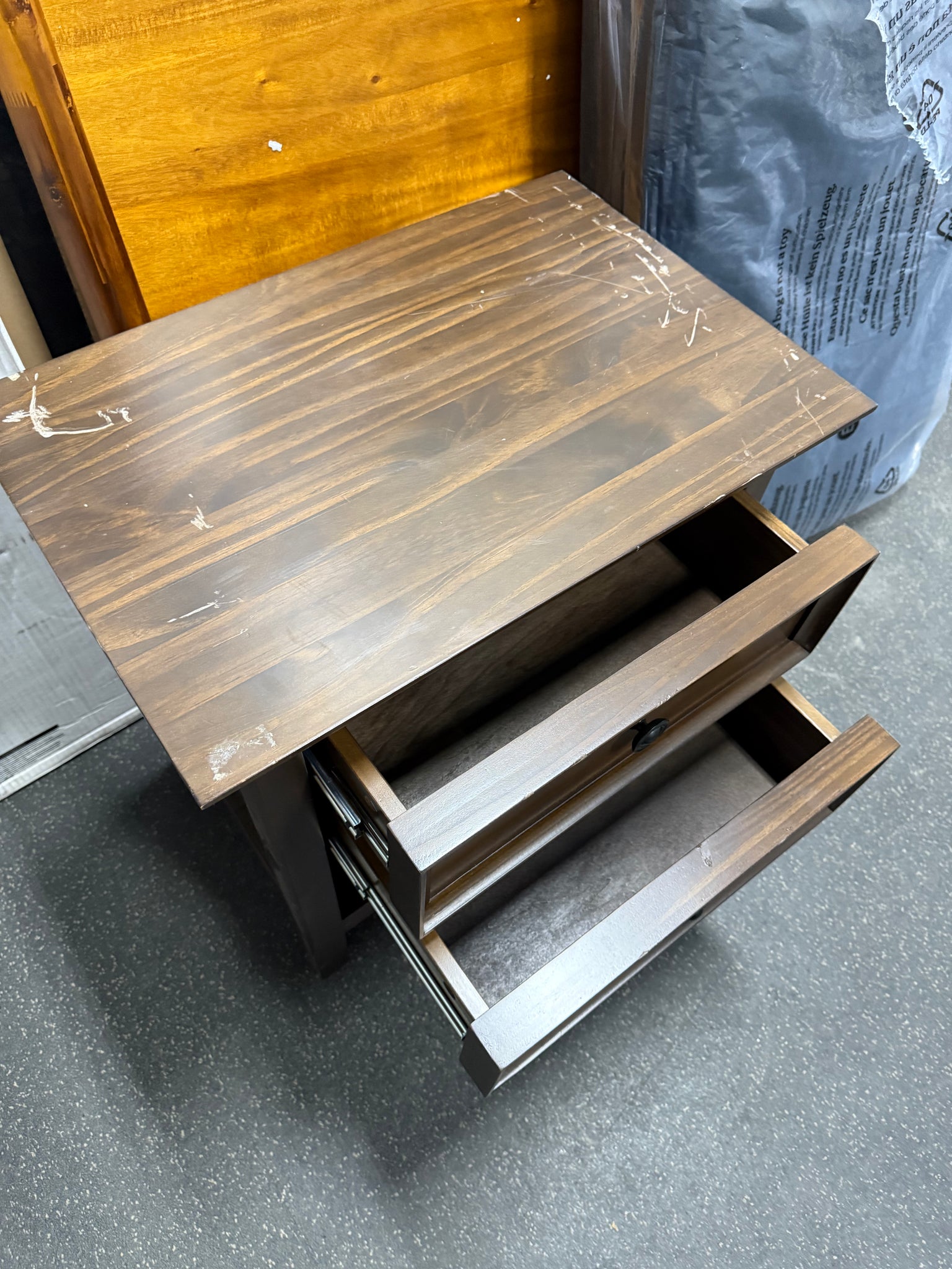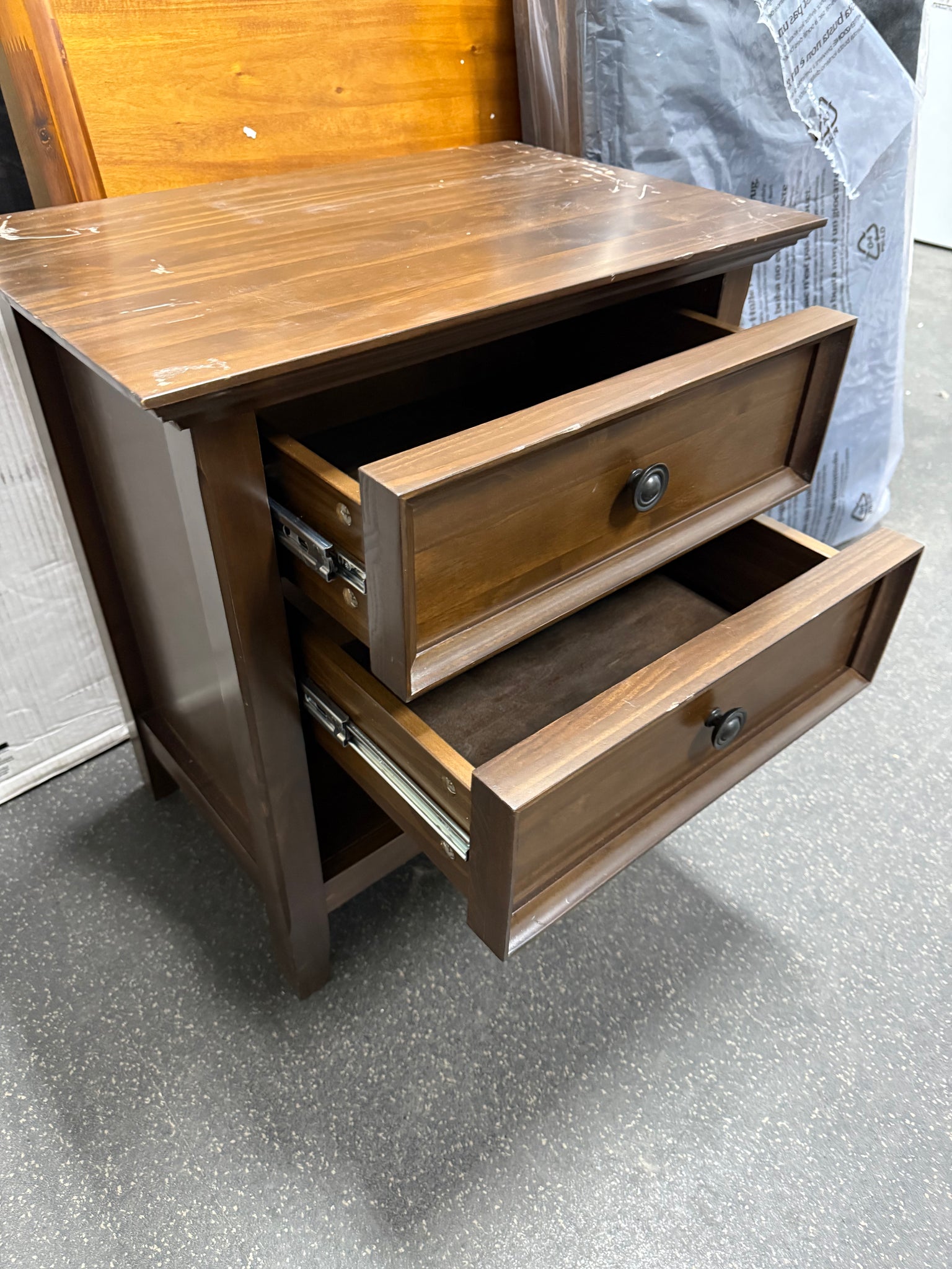 WyndenHall Halifax Bedside Table Natural Aged Brown! (NEW & ASSEMBLED - SCRATCHED)