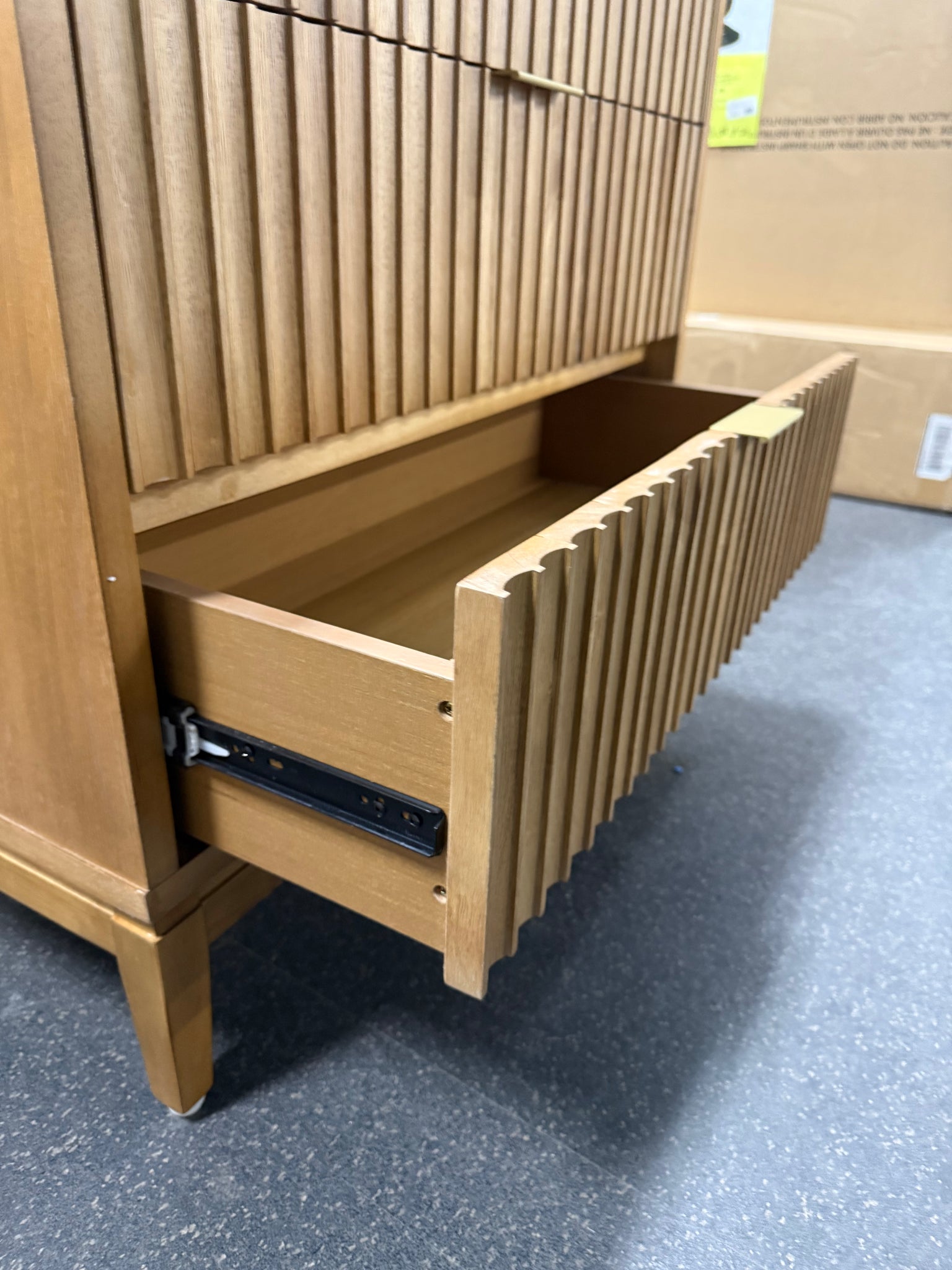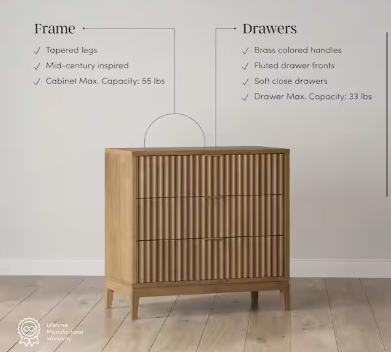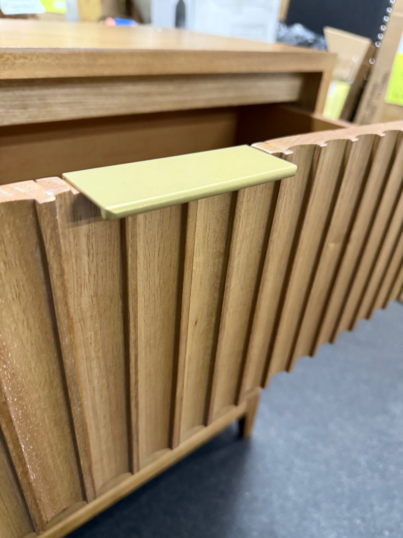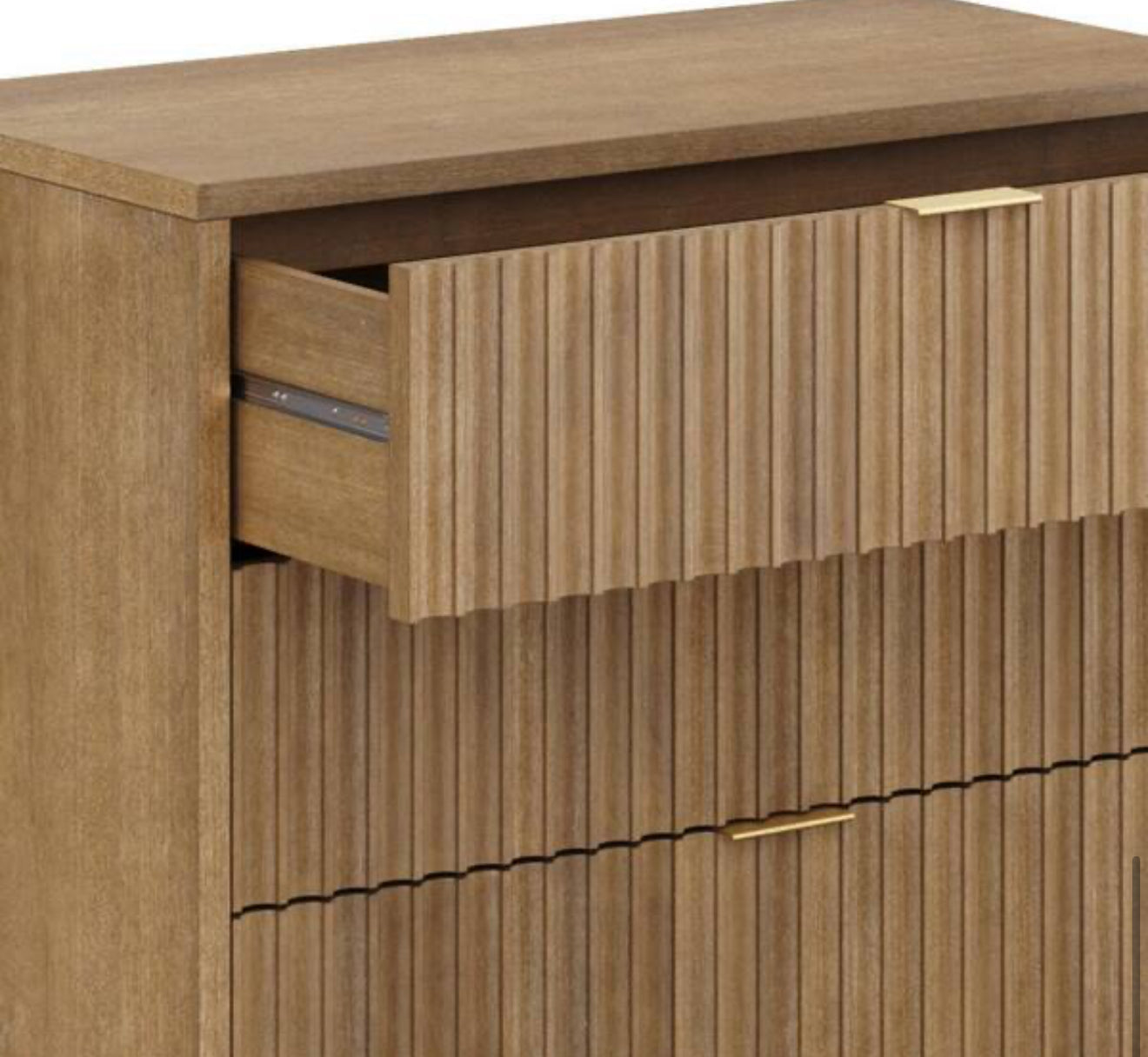 -Drawer doors are beautifully fluted, while enclosing ample storage space for your clothes, accessories, and other essentials