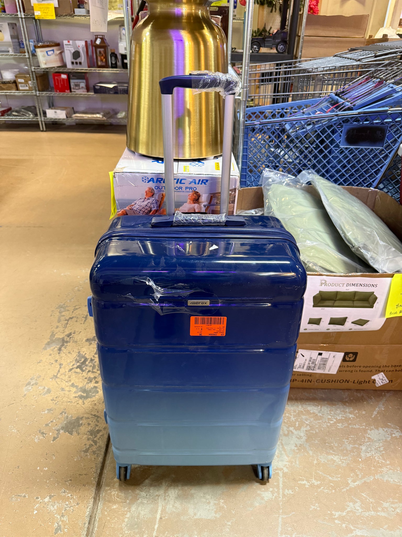 Merax 3-Piece Gradient Blue 20 in. 24 in. 28 in. ABS and PC Hardshell Spinner Luggage Set with TSA Lock, 20 in. with USB Port! (NEW - WRAPPED IN PLASTIC - MINOR SCRATCH ON 28”)