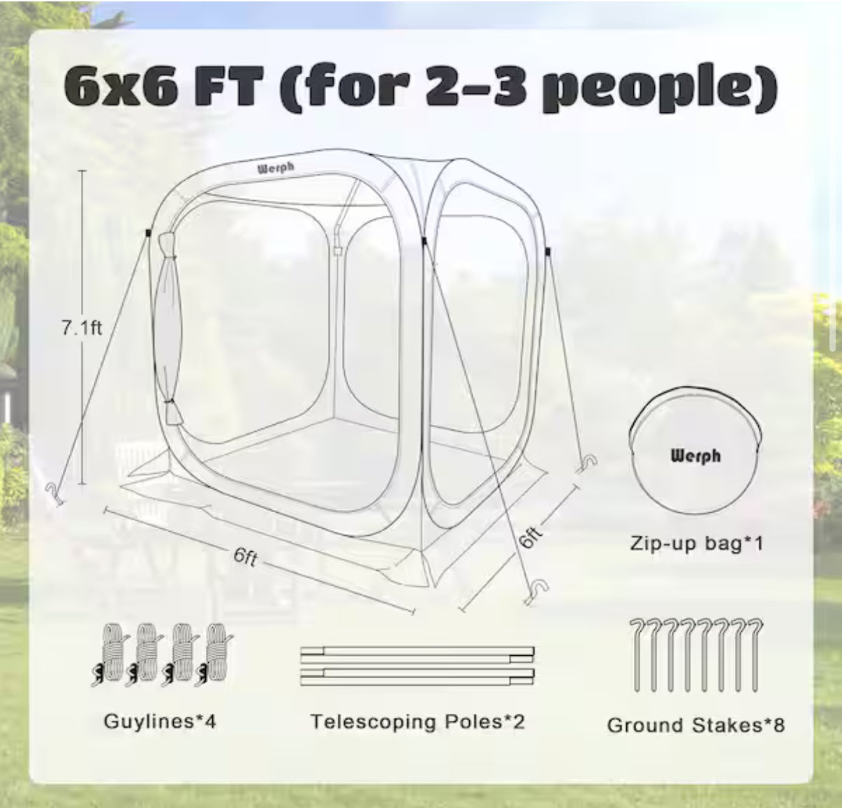 Werph 6 ft. x 6 ft. Beige Portable Canopy Tent with Mesh Mosquito Net, Screen House Room Camping Canopy Shade Tent!! NEW IN BOX!!