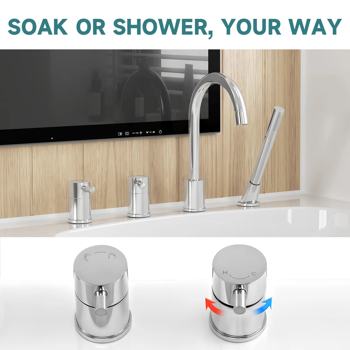 -Versatile faucet system with spout, handheld shower, diverter, and hot/cold water controls for a customizable bathing experience.