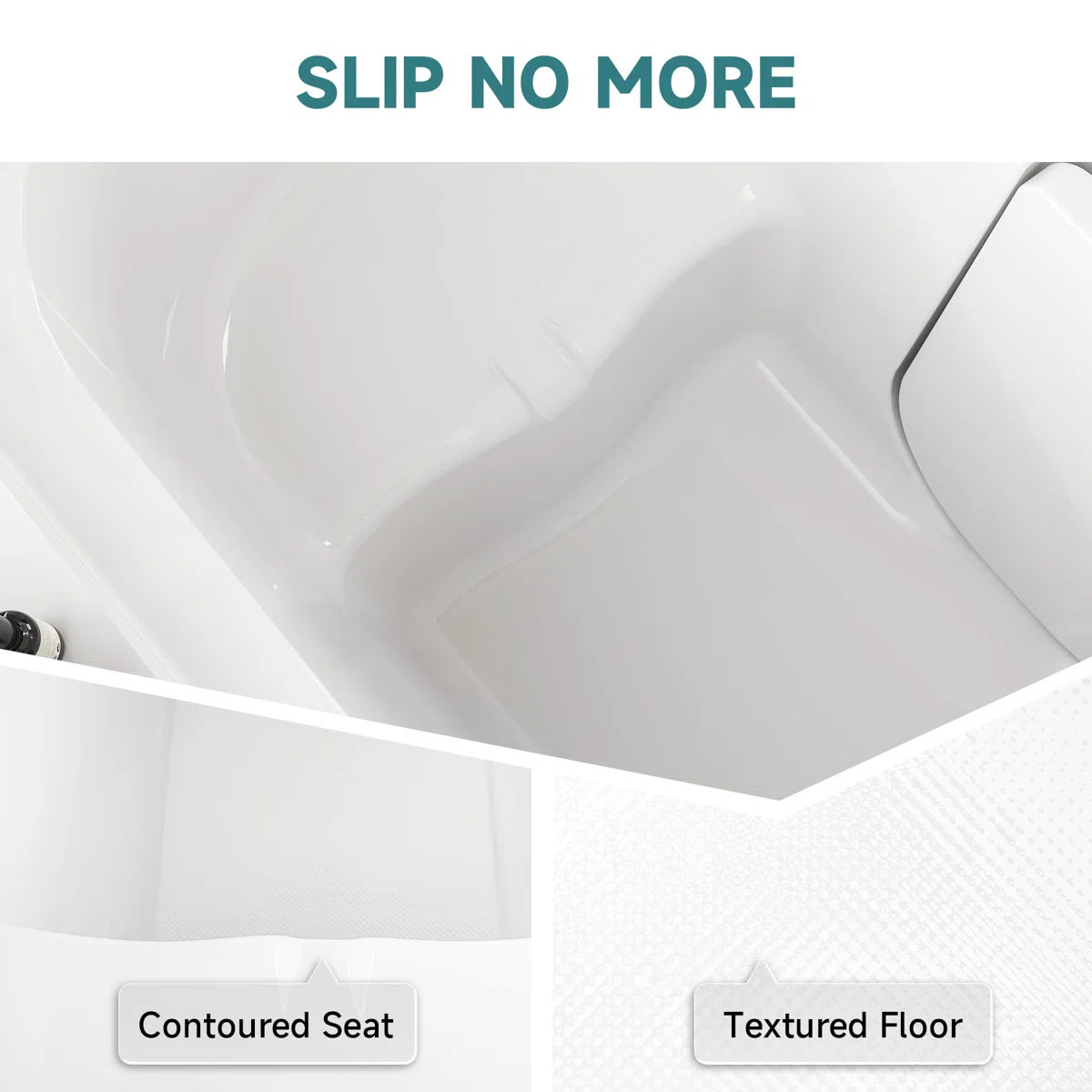 -The tub’s low entry threshold, slip-resistant textured floor, and contoured seat provide added safety and comfort, ensuring a secure and enjoyable bathing experience.