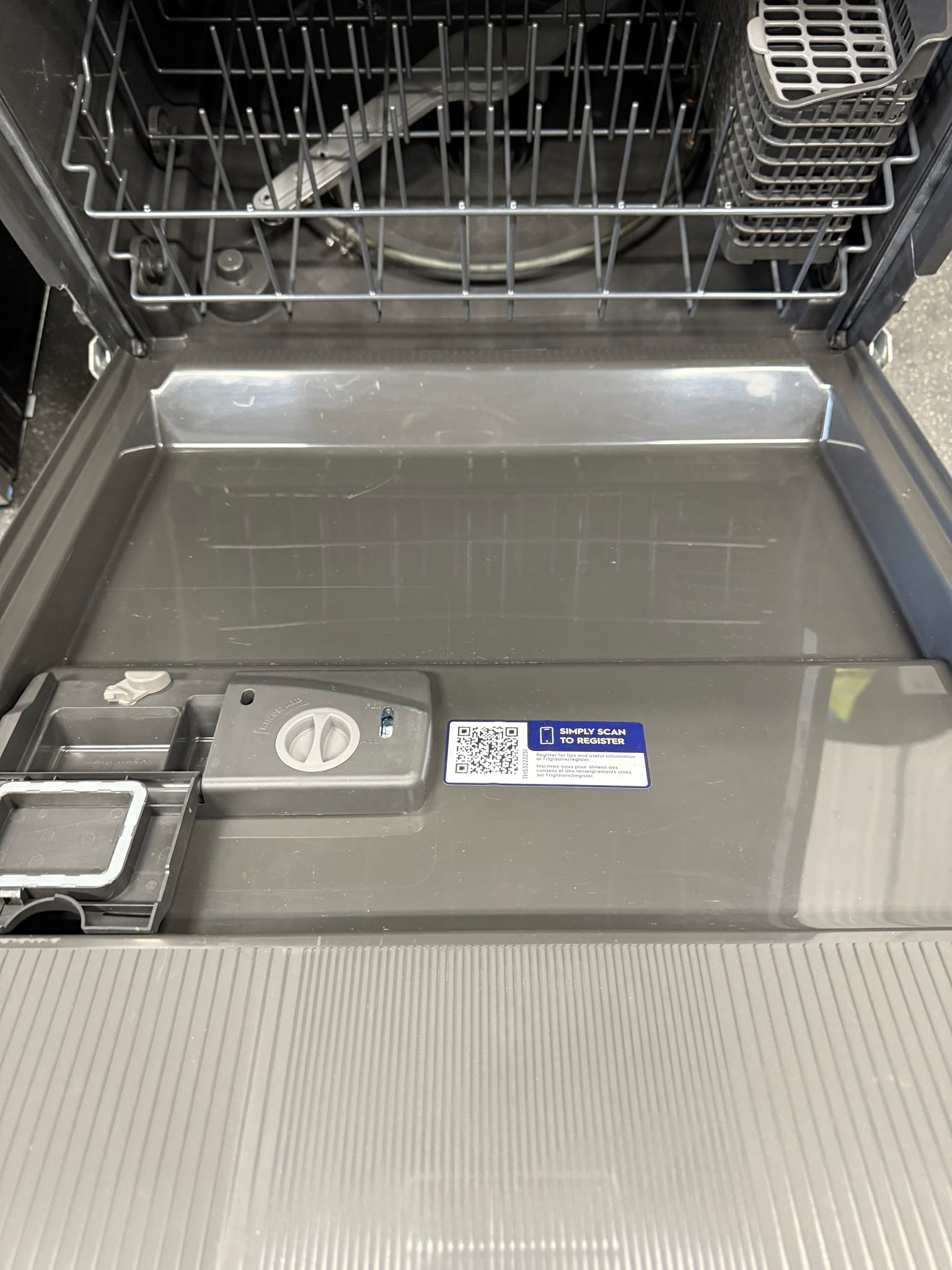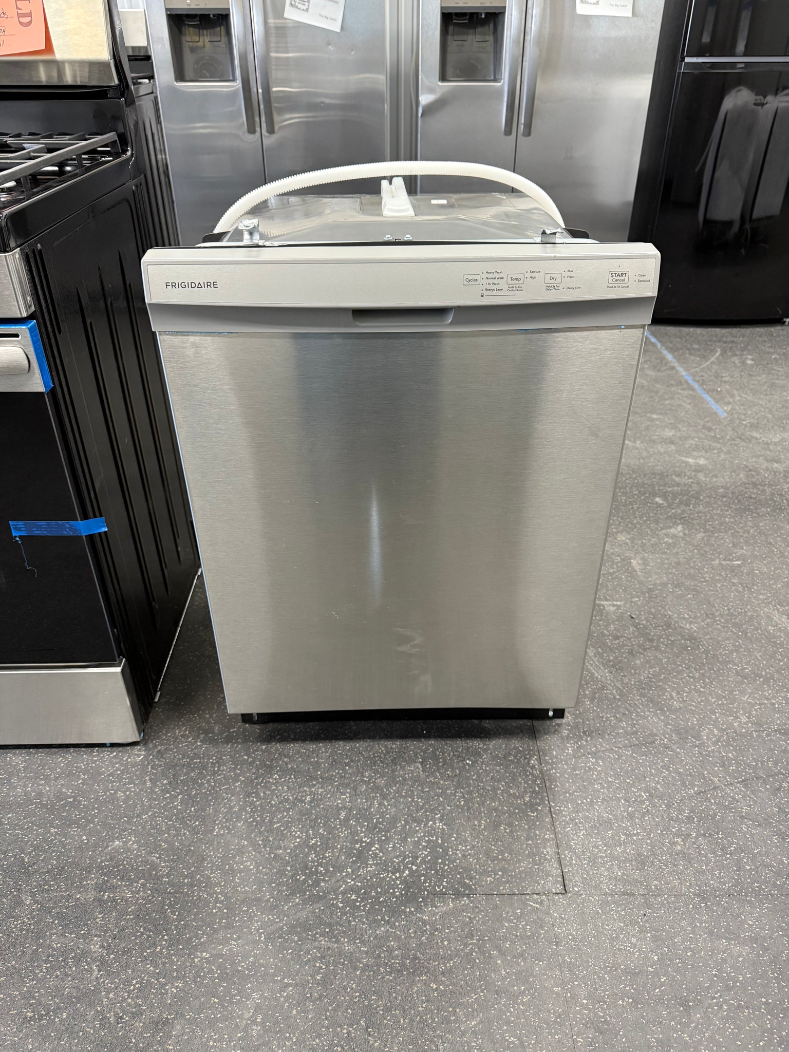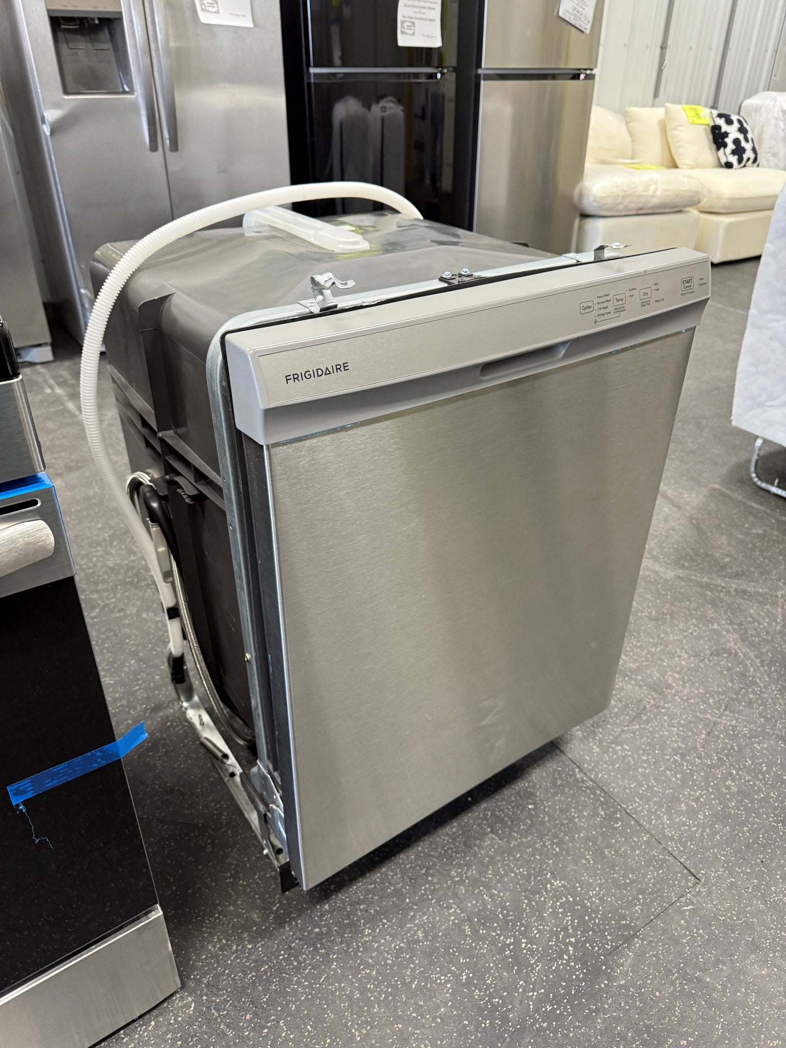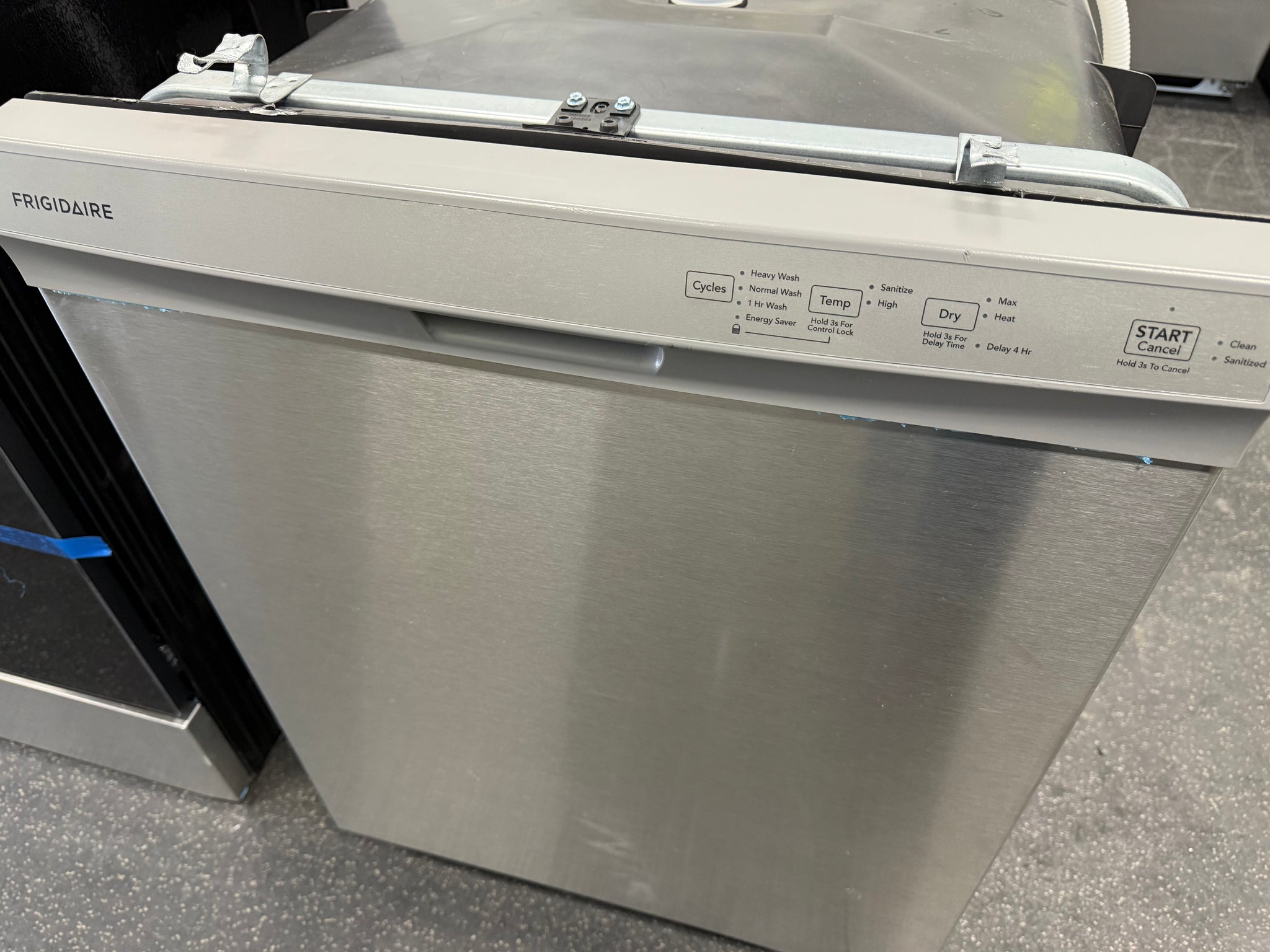 Frigidaire 24 in Front Control Built-In Tall Tub Dishwasher in Stainless Steel with 4-cycles and DishSense Sensor Technology! (NEW - MISSING OUTER COVER - MISSING BOTTOM TRIM COVER!)