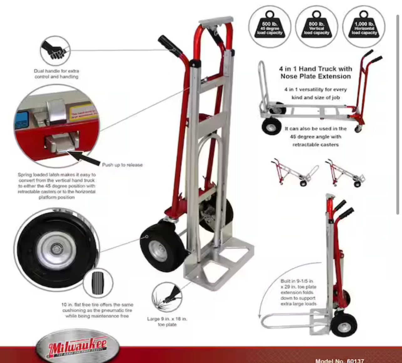 Milwaukee 1,000 lbs. Capacity 4-in-1 Hand Truck! (BRAND NEW -)