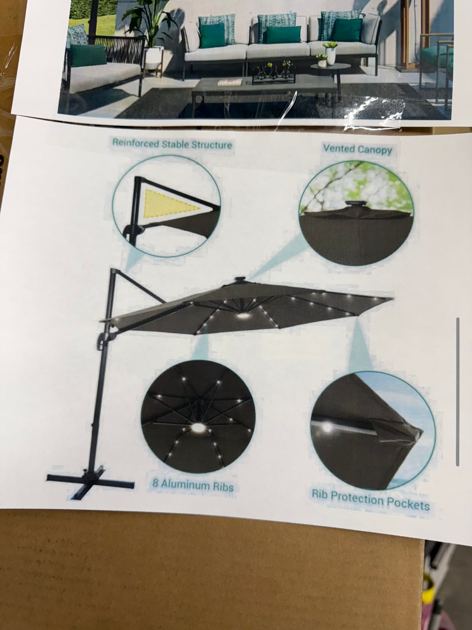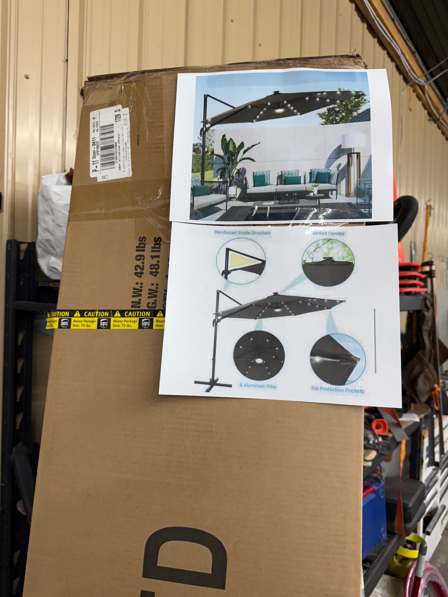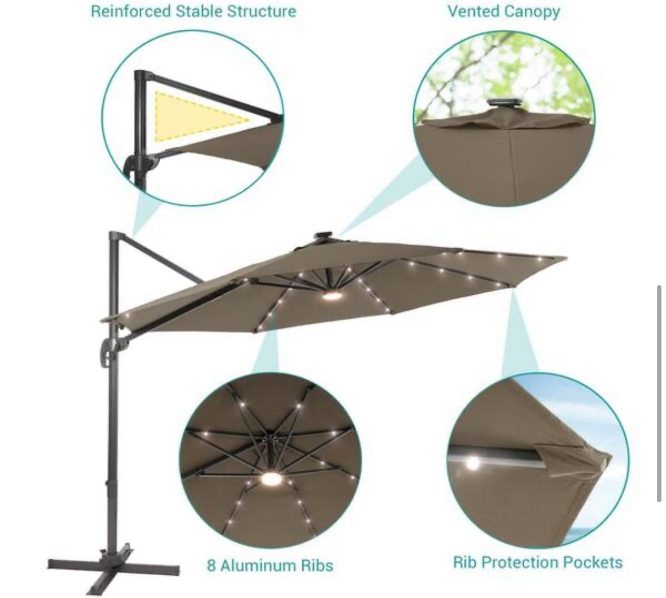 11 ft. LED Premium Cantilever Patio Umbrella - Outdoor Comfort with 360° Rotation and Canopy Angle Adjustment, Taup! (NEW IN BOX)