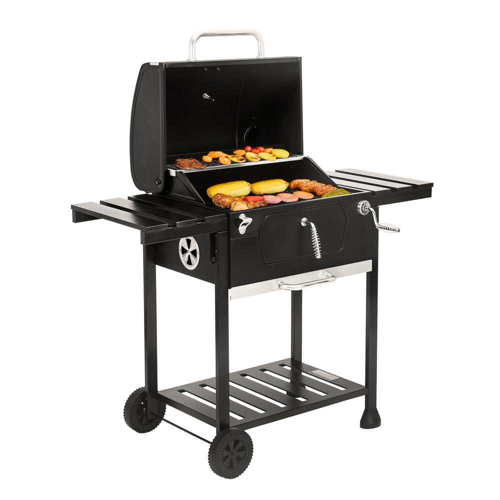 - 2.Height-Adjustable Charcoal Pan: It's easy to adjust the height of the charcoal pan by just rotating the crank handle of this grill. With our height-adjustable charcoal pan, you can easily control the distance between charcoal and food for better heat control.