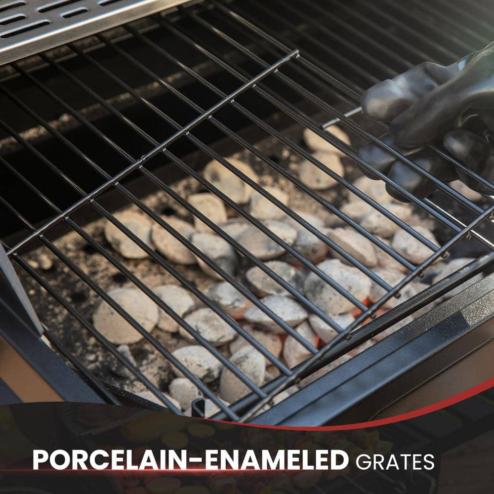 - 3.Easy to Add Charcoal: Front charcoal access door with a cool-touch handle enables you to add charcoal easily during the grilling time.