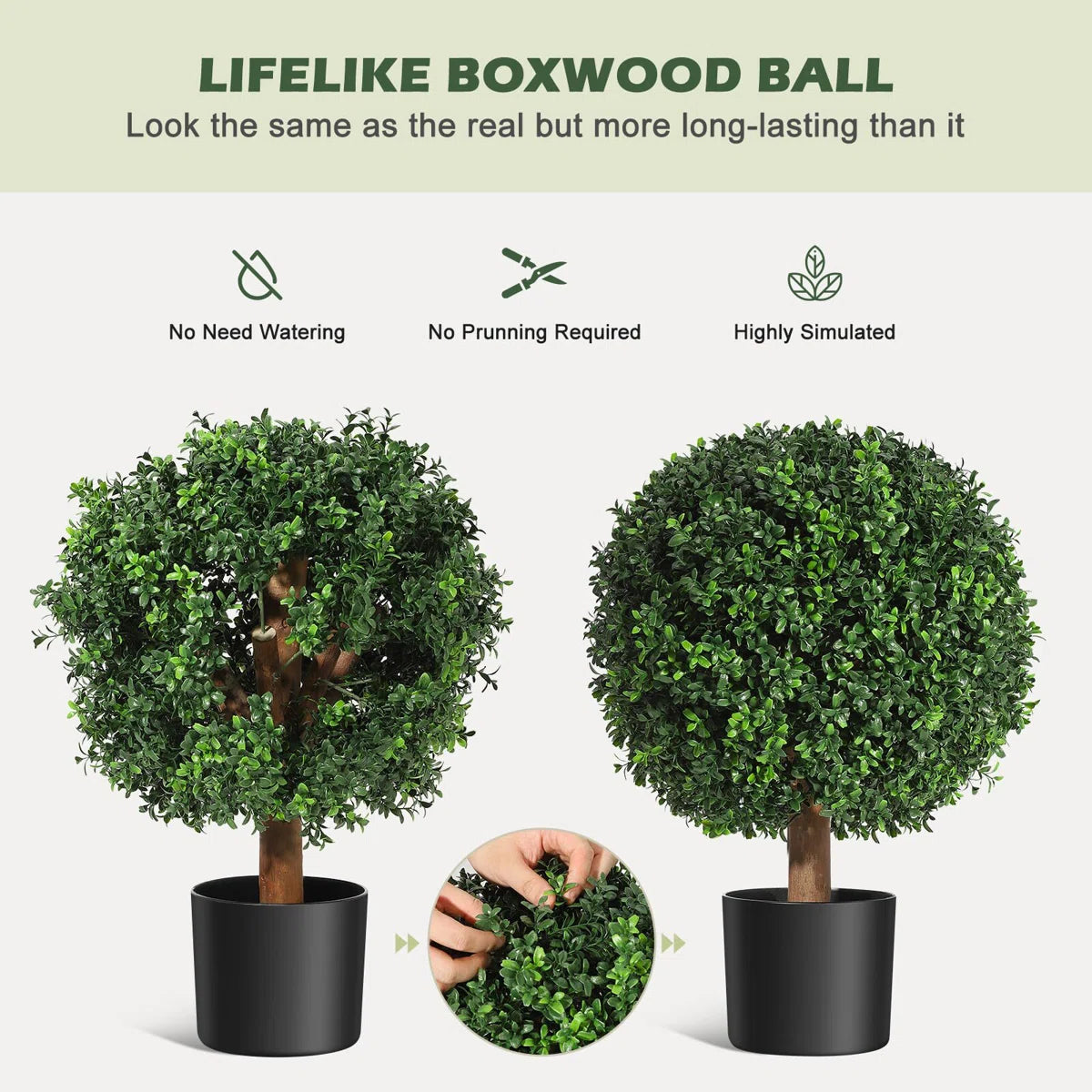 -Realistic Design: Standing 24INCH tall, this topiary tree features lush, vibrant foliage with a natural texture, closely resembling a real boxwood.