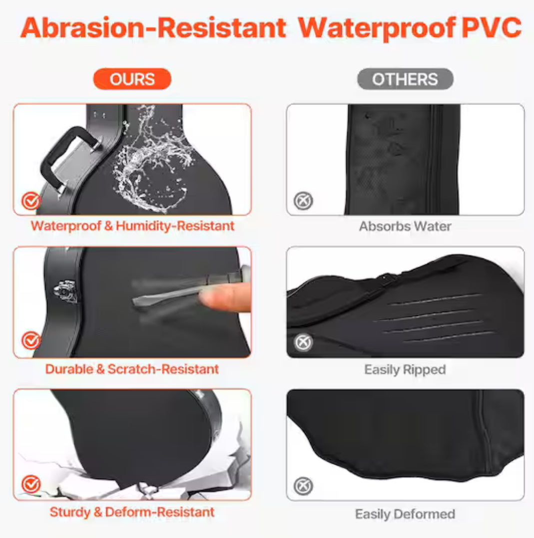 -Built to last: crafted from a strong PVC outer shell and plywood, this guitar case offers exceptional durability, it is also waterproof and moisture-resistant, protecting your guitar from the elements and preventing any damage