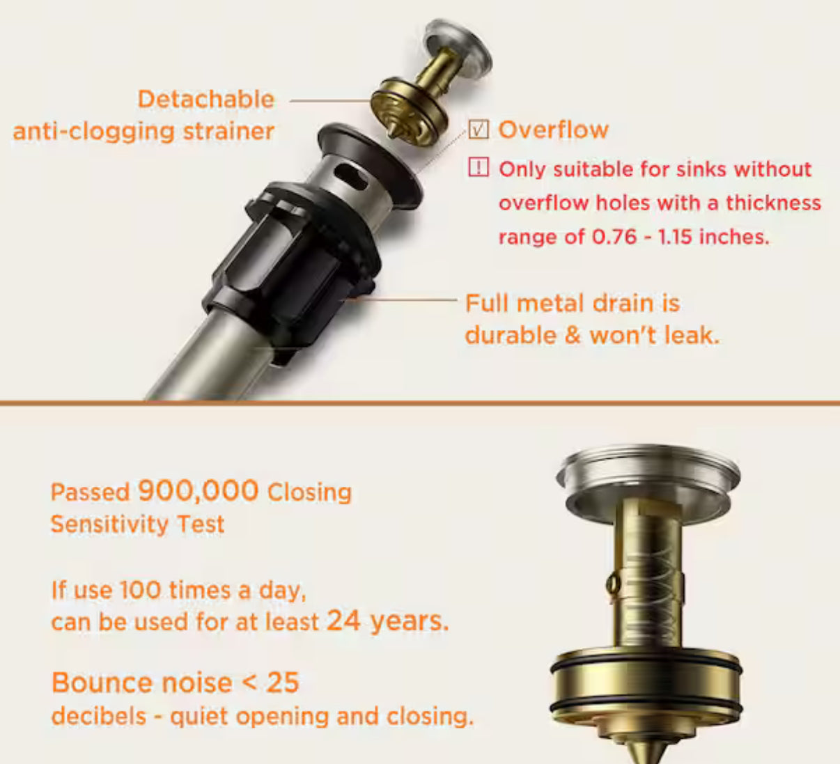 -Sturdy pex supply line and includes a drain assembly to complement the faucet.