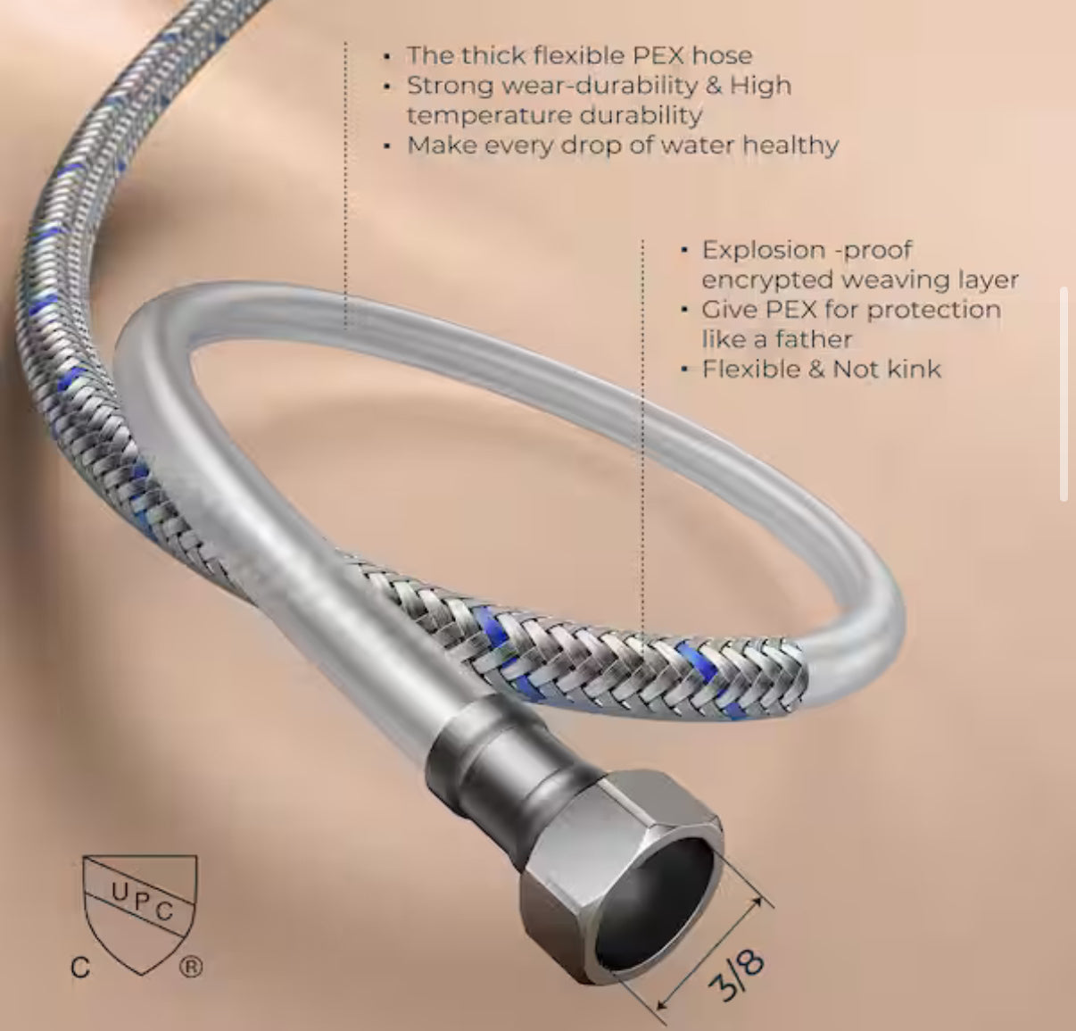 -3/8 thread designed for use with standard US plumbing connections, built-in rubber ring effectively avoids water leakage.