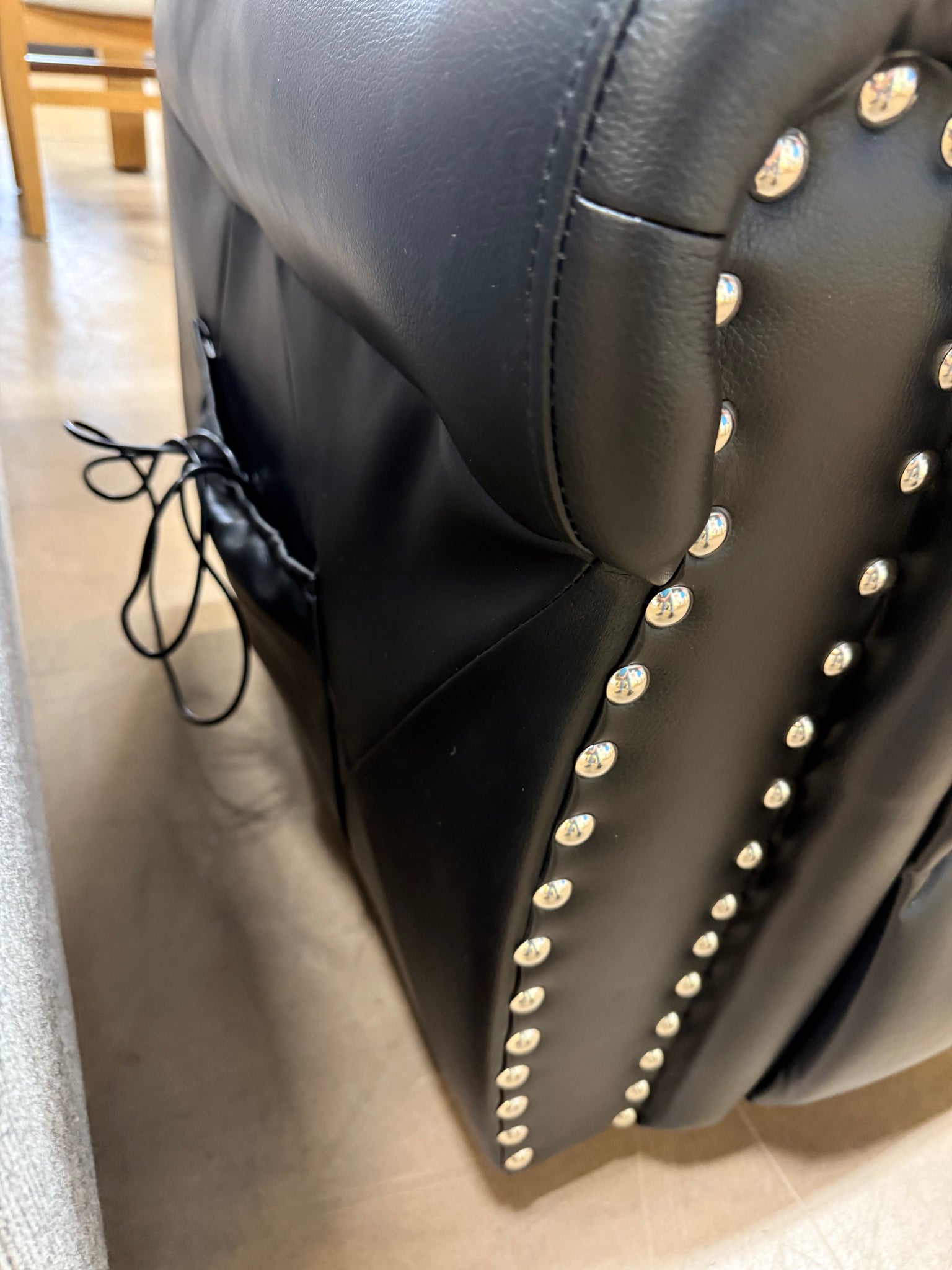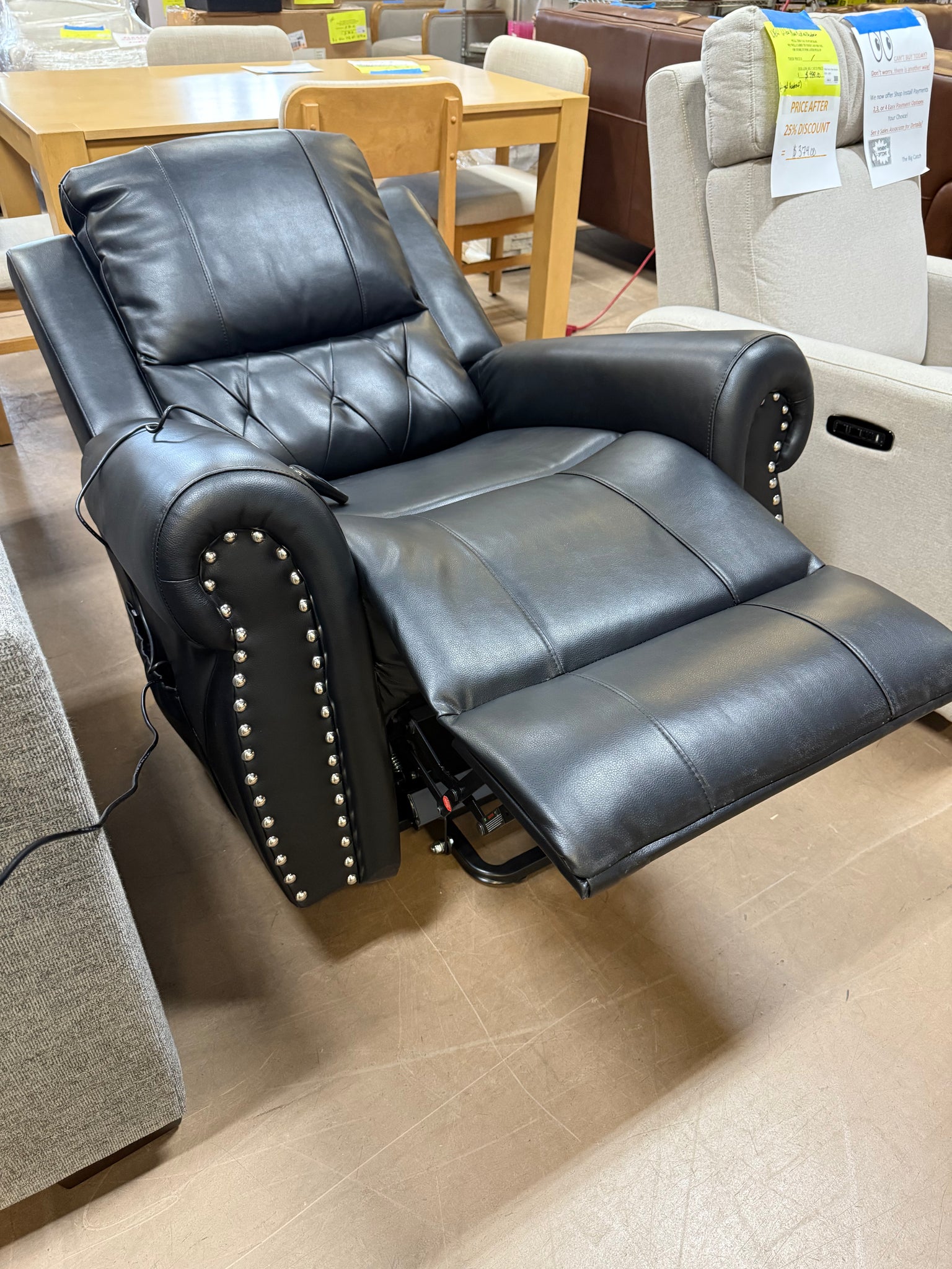 Black Studded Air Leather Power Lift Reclining Chair with Massage, Recliner Chair with Remote and Footrest! (NEW)