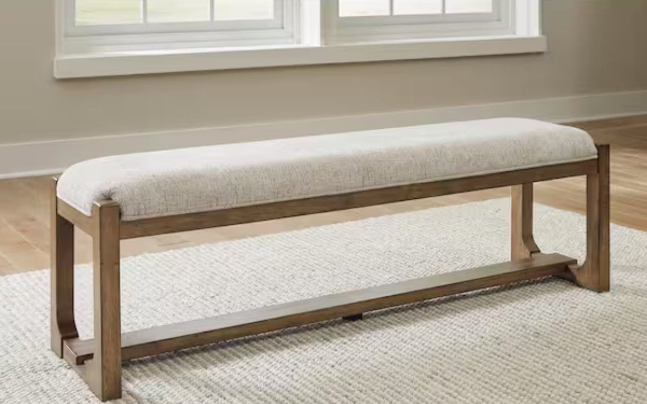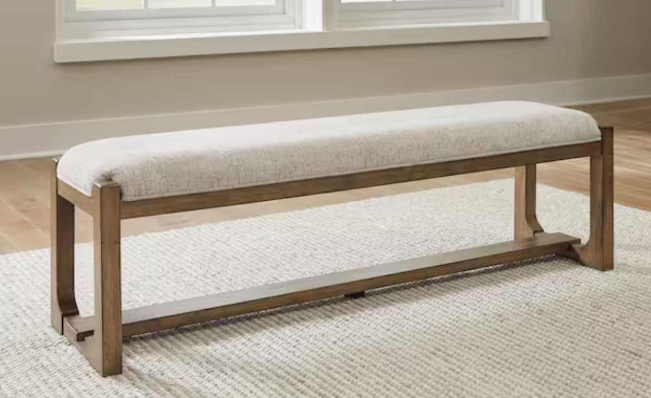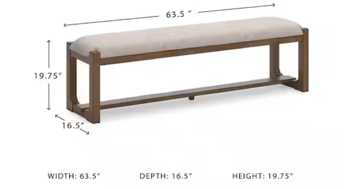 Cabalynn Casual Beige / Light Brown Polyester 64 in. Trestle Base Bench without Back Seats 3! (NEW & ASSEMBLED)