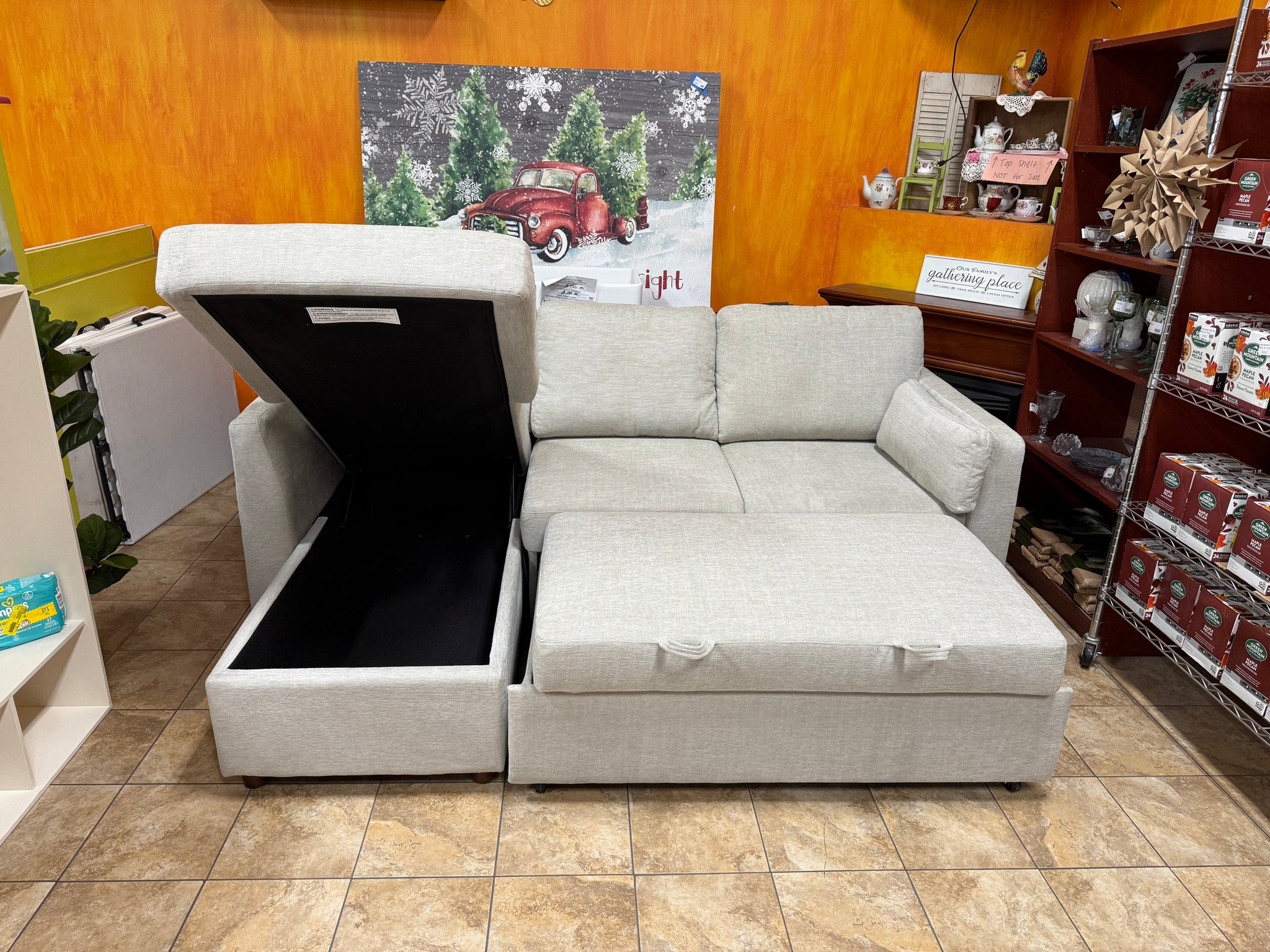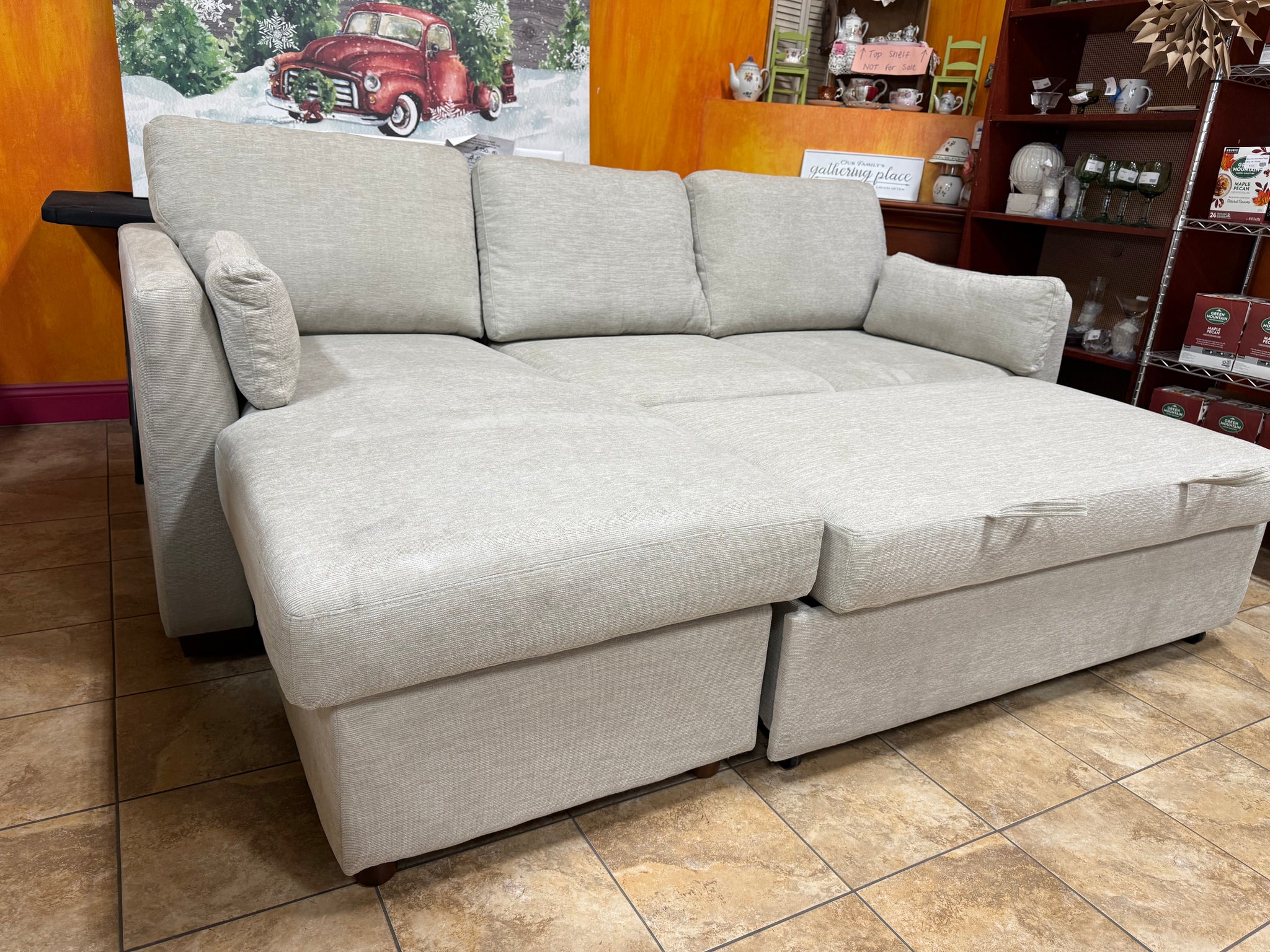Coddle Luke Fabric Sleeper Sofa with Reversible Chaise and Storage, Beige! (BRAND NEW)