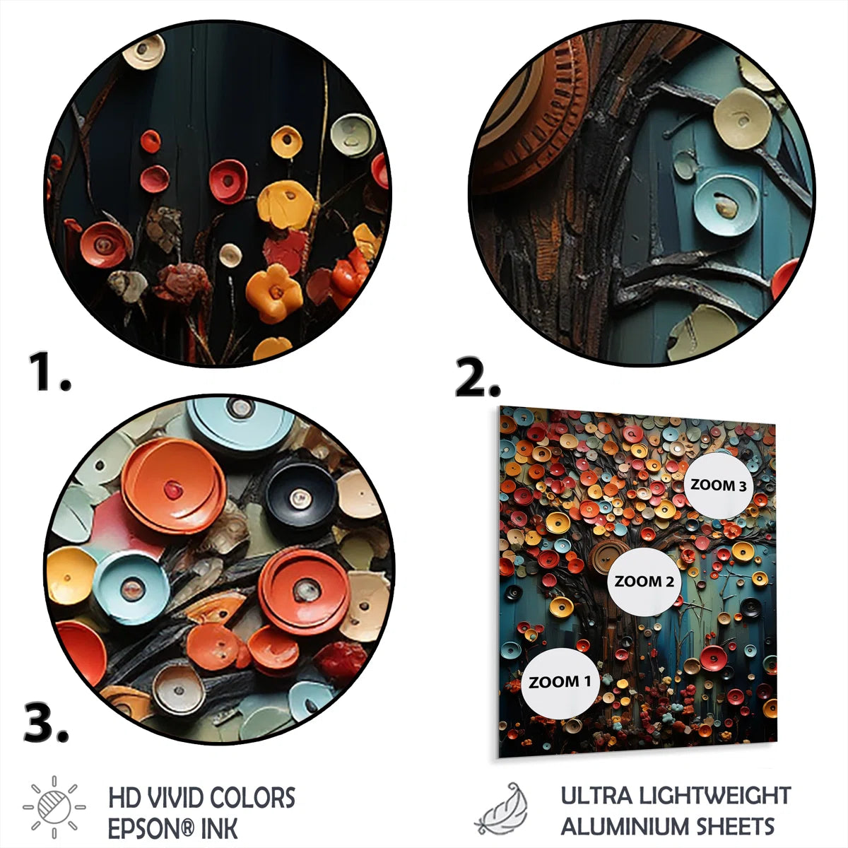 -High-quality digital images are created directly into a glossy aluminum panel, producing a stunning and captivating print in the glossy finish of the metal.