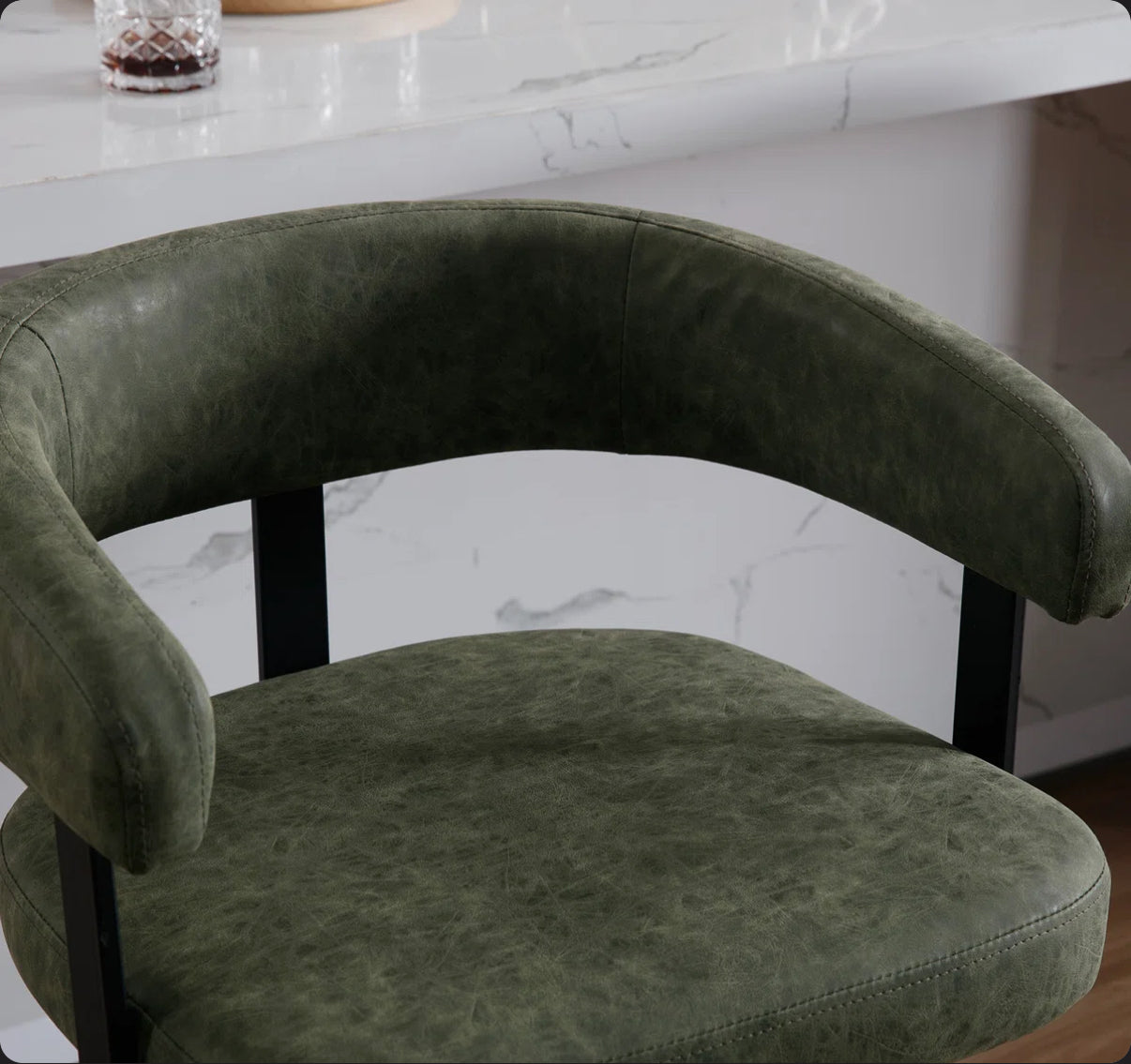 -Barrel Shape Design: The stools have a distinctive barrel shape with a roundback silhouette. This design not only looks aesthetically pleasing but also provides a more enveloping seating experience, enhancing comfort.