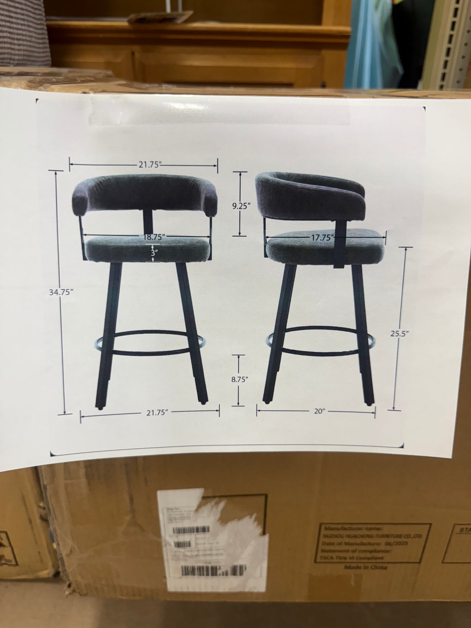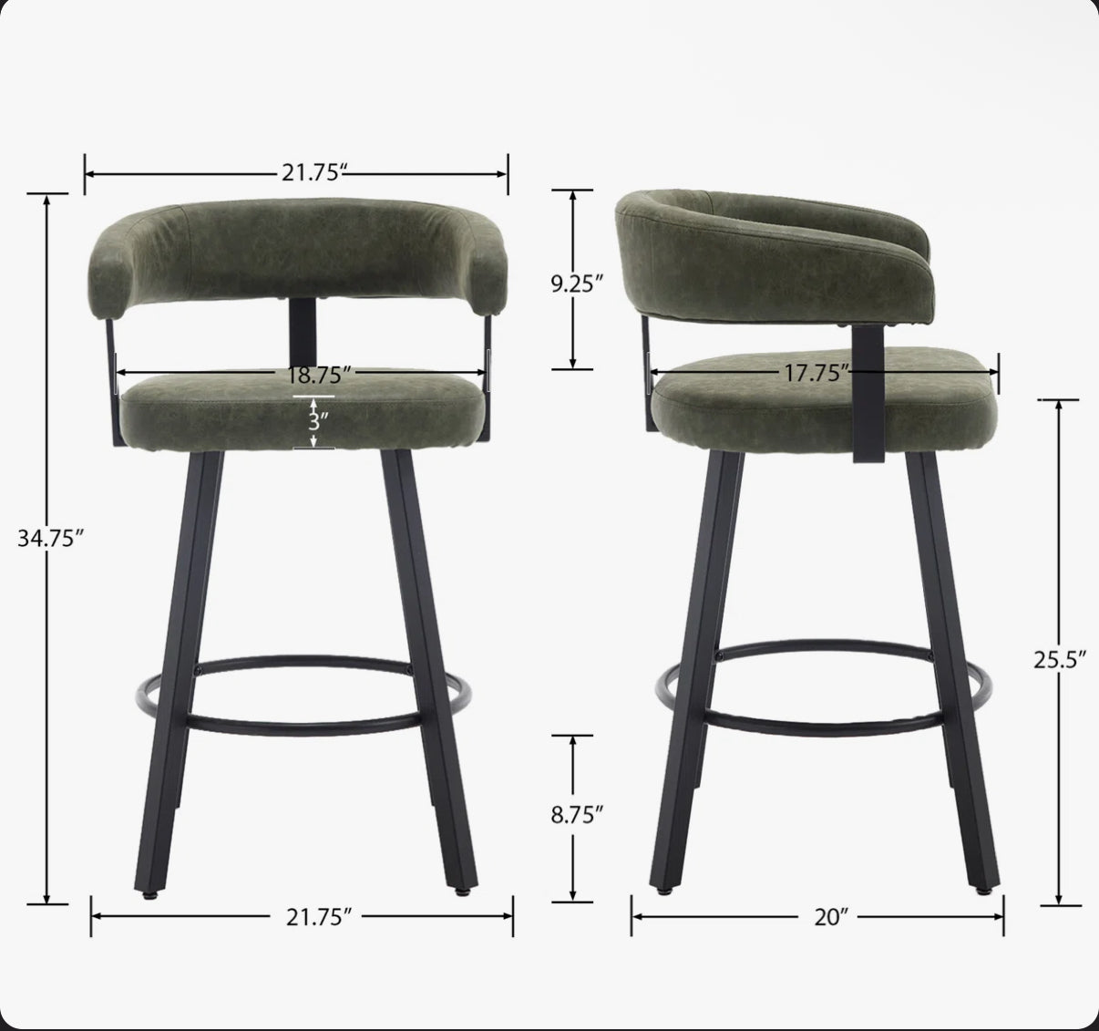 -Dimensions: Overall dimension:21.75"(W)*20"(D)*34.75"(H). Seat Width:18.75", Seat Depth: 17.75".Back Height:9.25".