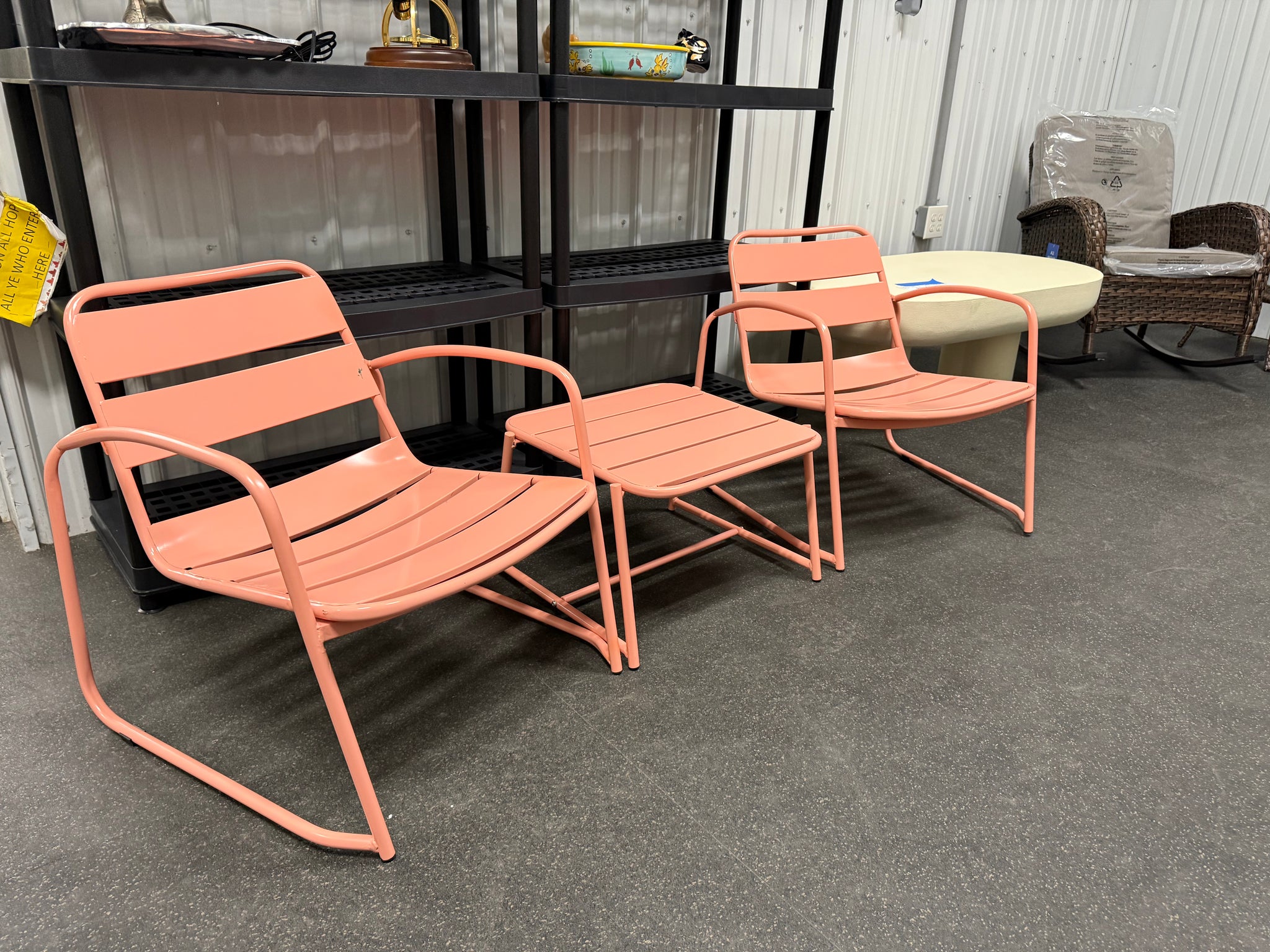 Cowan Matte Coral 3-Piece Metal Outdoor Patio Conversation Seating Set! (NEW & ASSEMBLED - SCRATCHED)