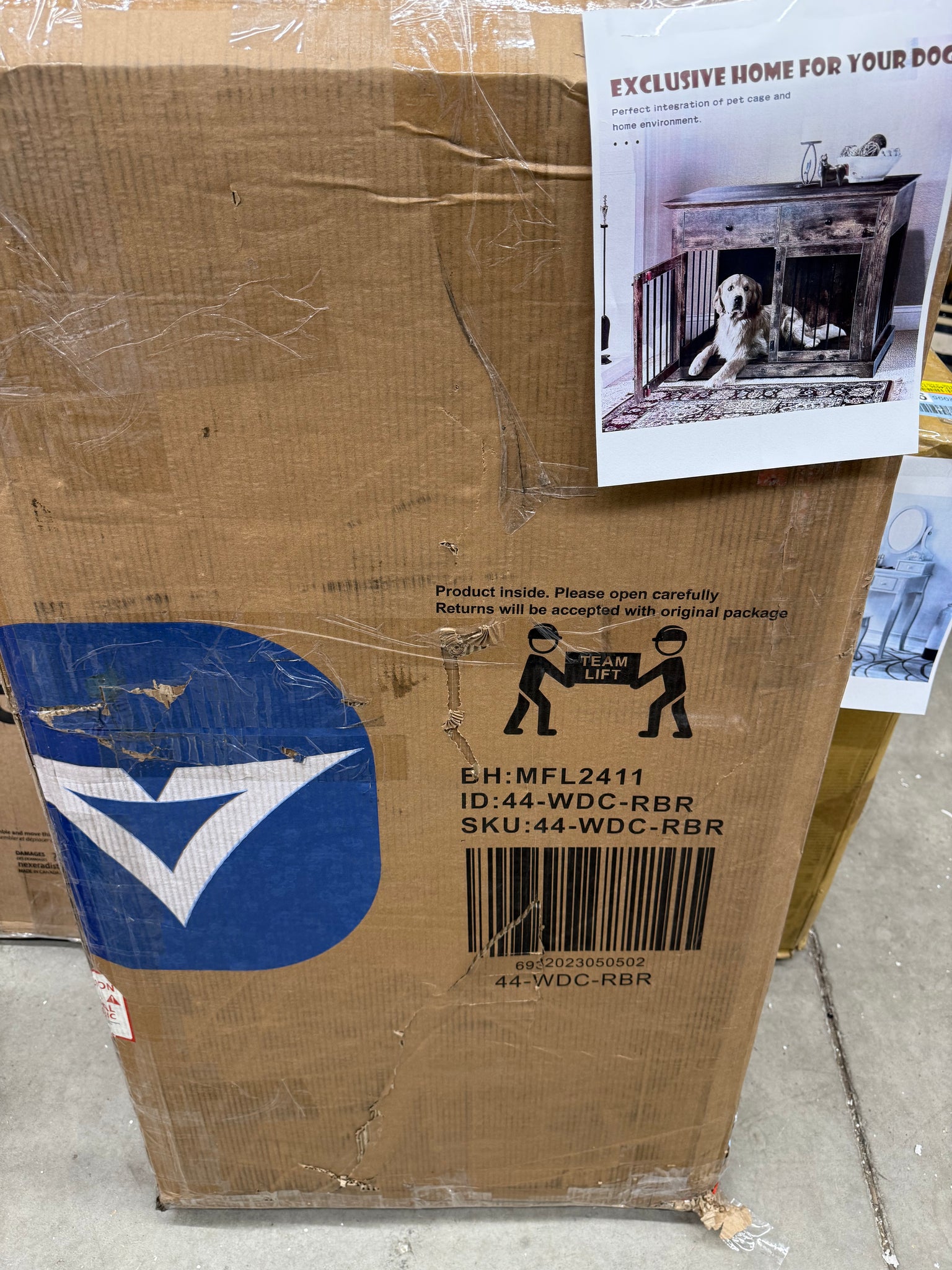 -Made from particleboard, this crate is both practical and appealing, making it a great addition to any pet-friendly home.