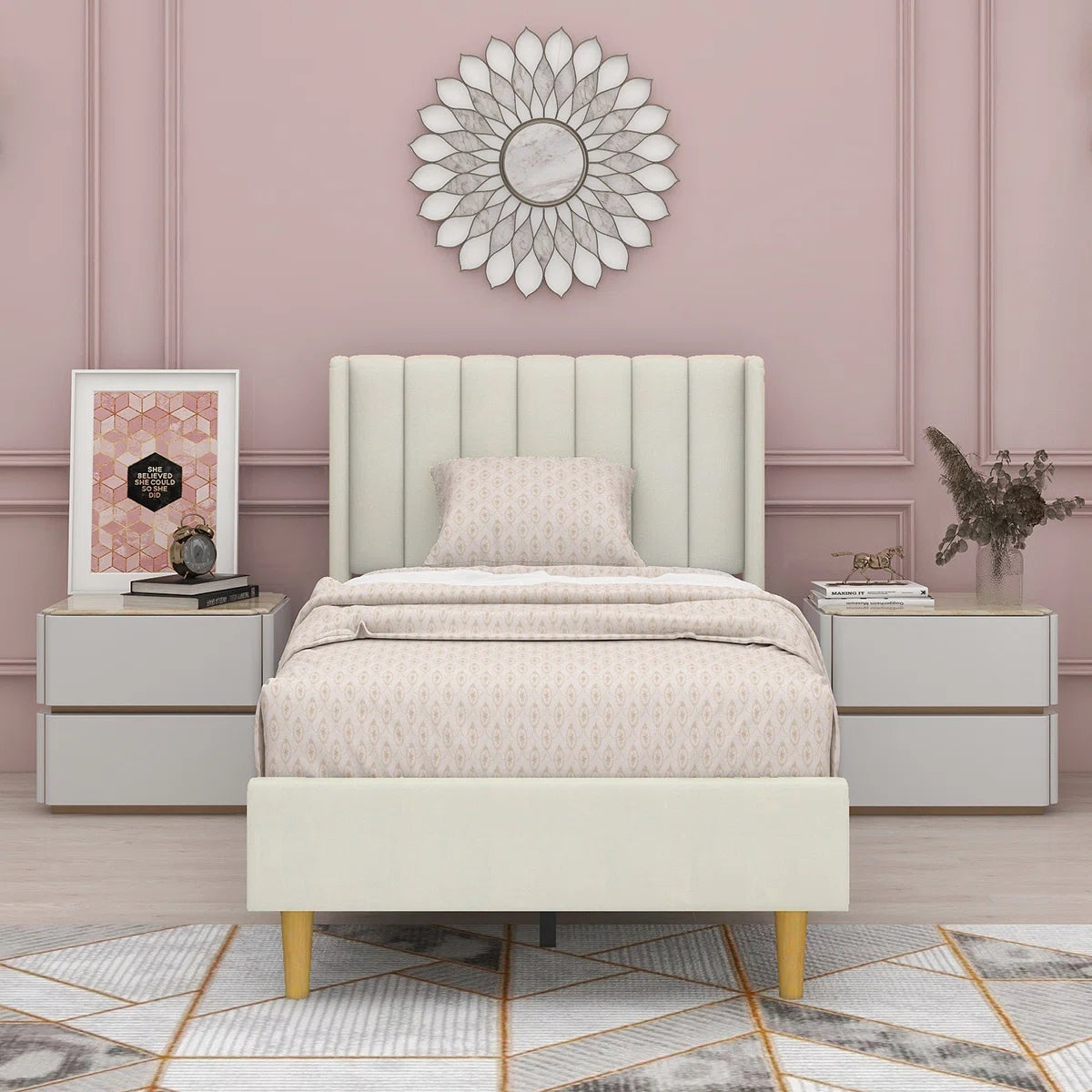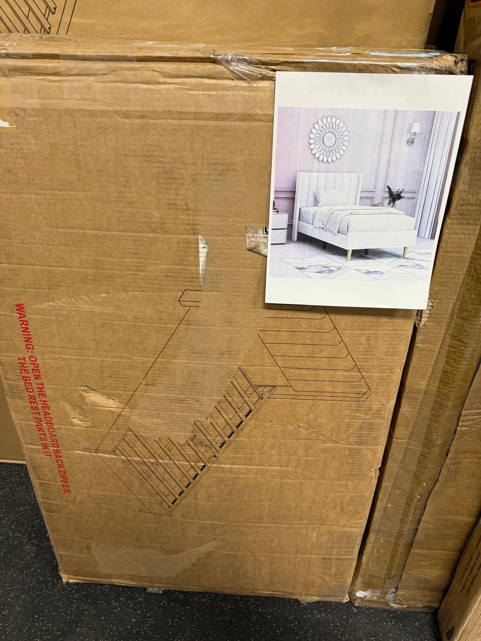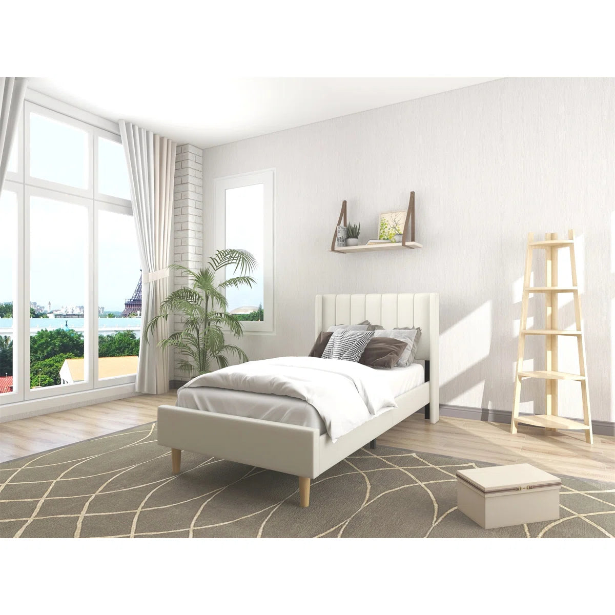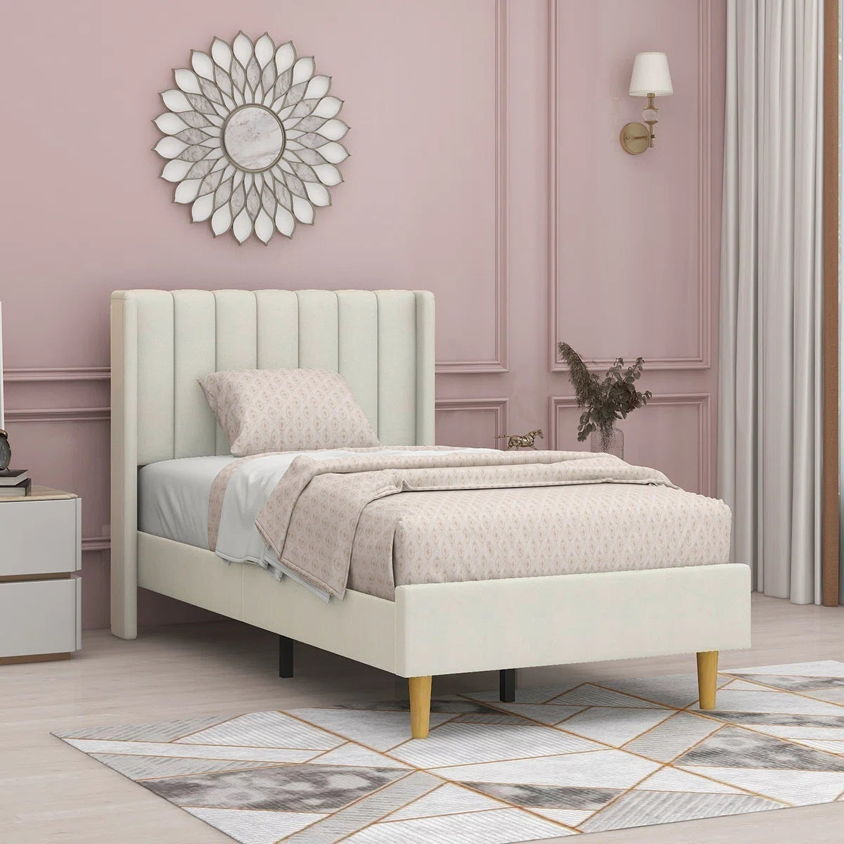Eriksay Low Profile Upholstered Platform Bed with Wingback Headboard, Twin Size, White! (NEW IN BOX)