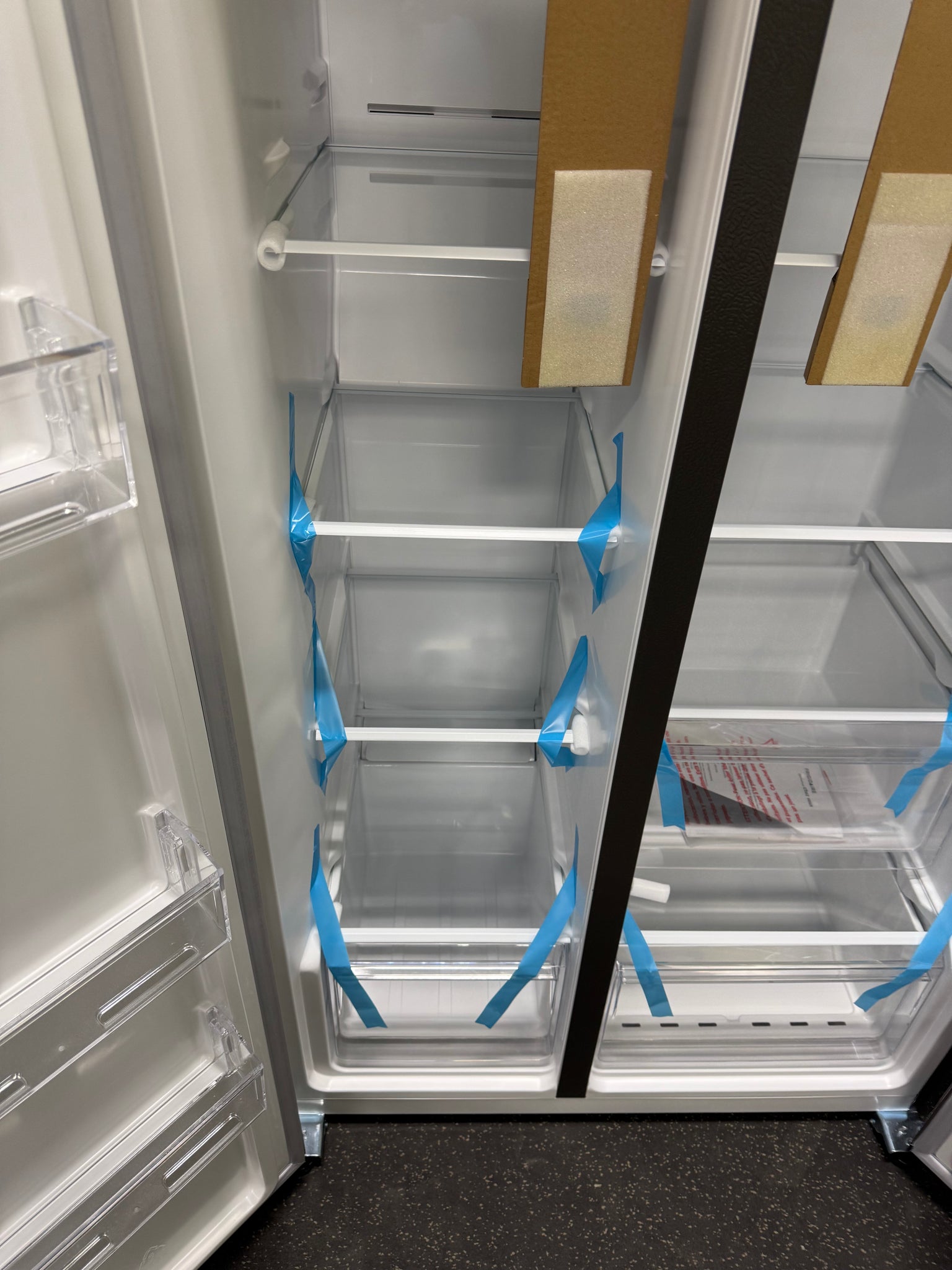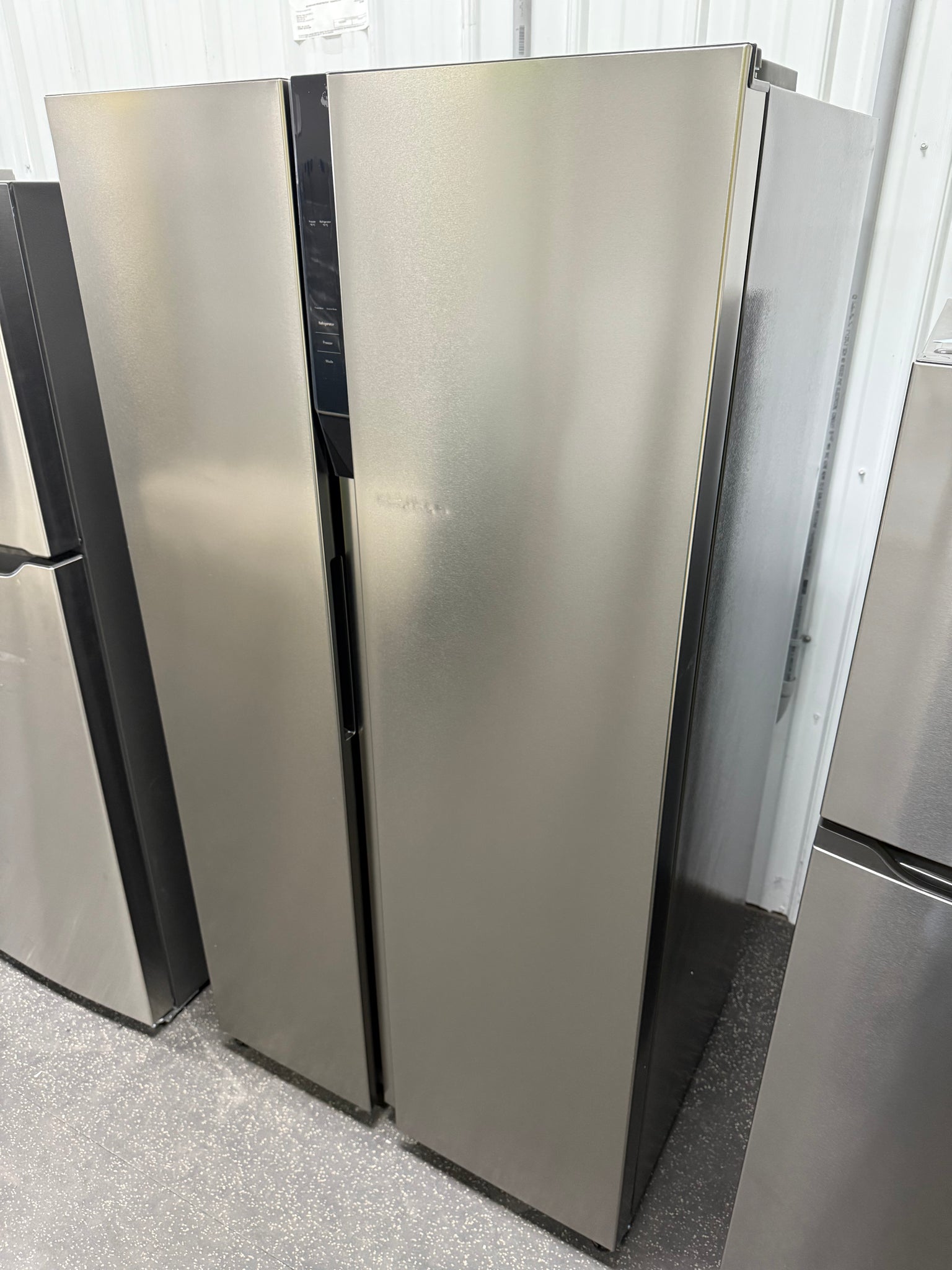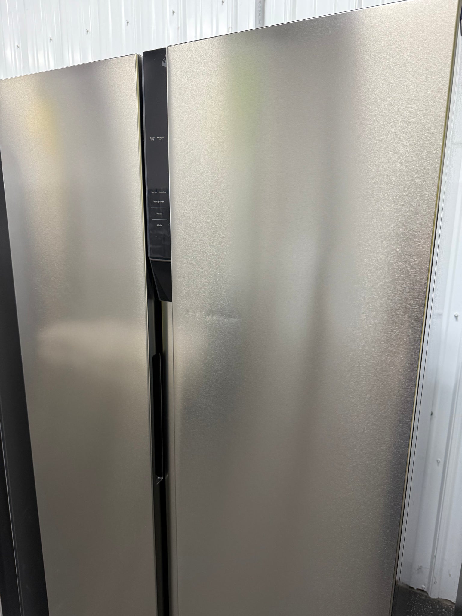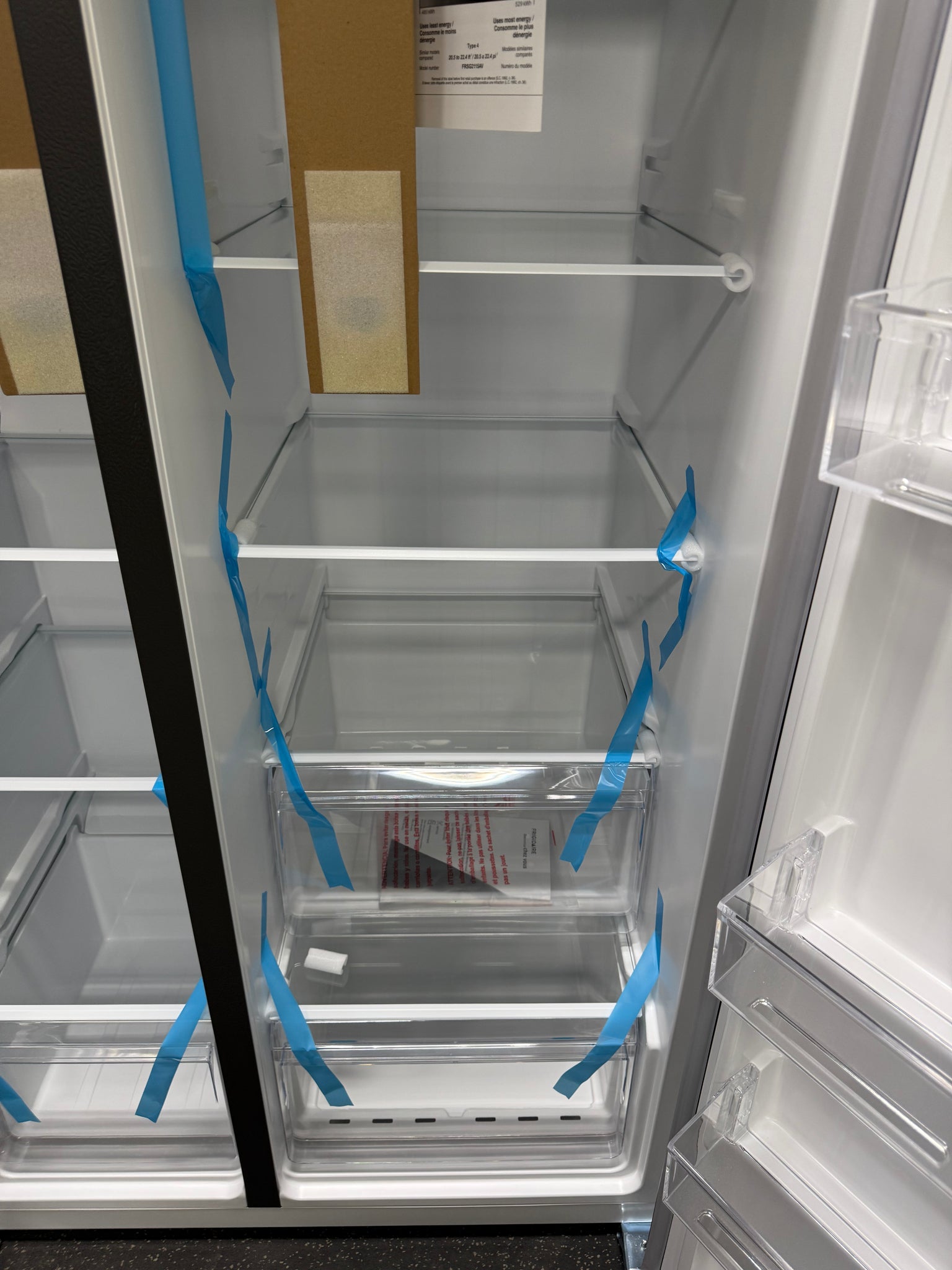 Frigidaire 21.4-cu ft Counter-Depth Side-by-Side Refrigerator ( Fingerprint-Resistant Stainless Look )!! BRAND NEW (MINOR TAPE RESIDUE ON DOOR & MINOR DENTS)!!
