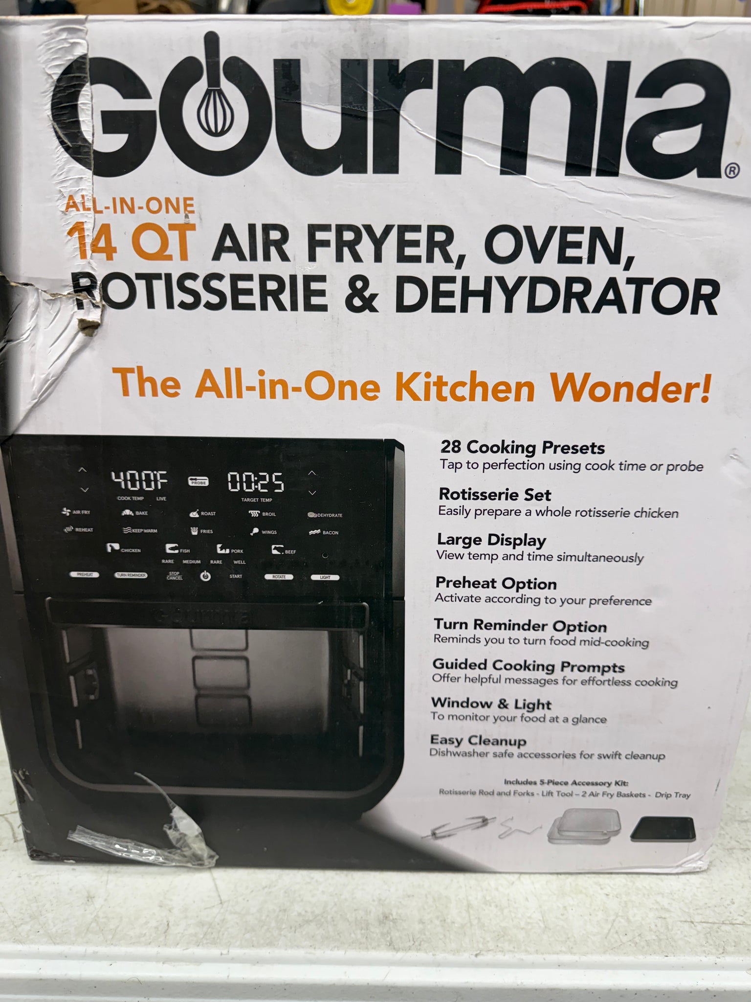 Gourmia All-in-One 14-Quart Air Fryer, Oven, Rotisserie, Dehydrator with Temperature Probe!! BRAND NEW!!