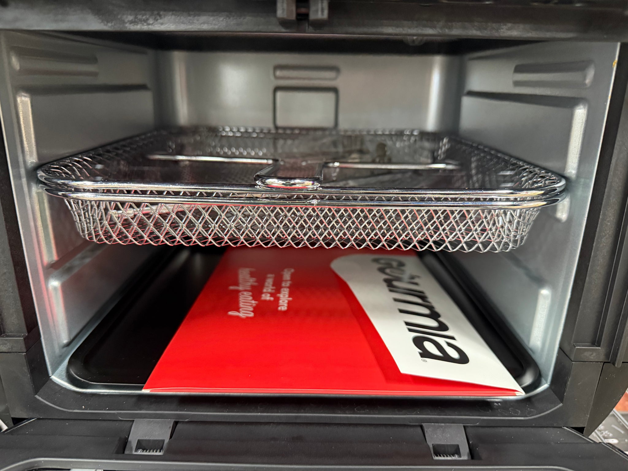 -Includes: 2 Air Fry Baskets, Rotisserie Spit, Rotisserie Lift Tool, and Drip Tray