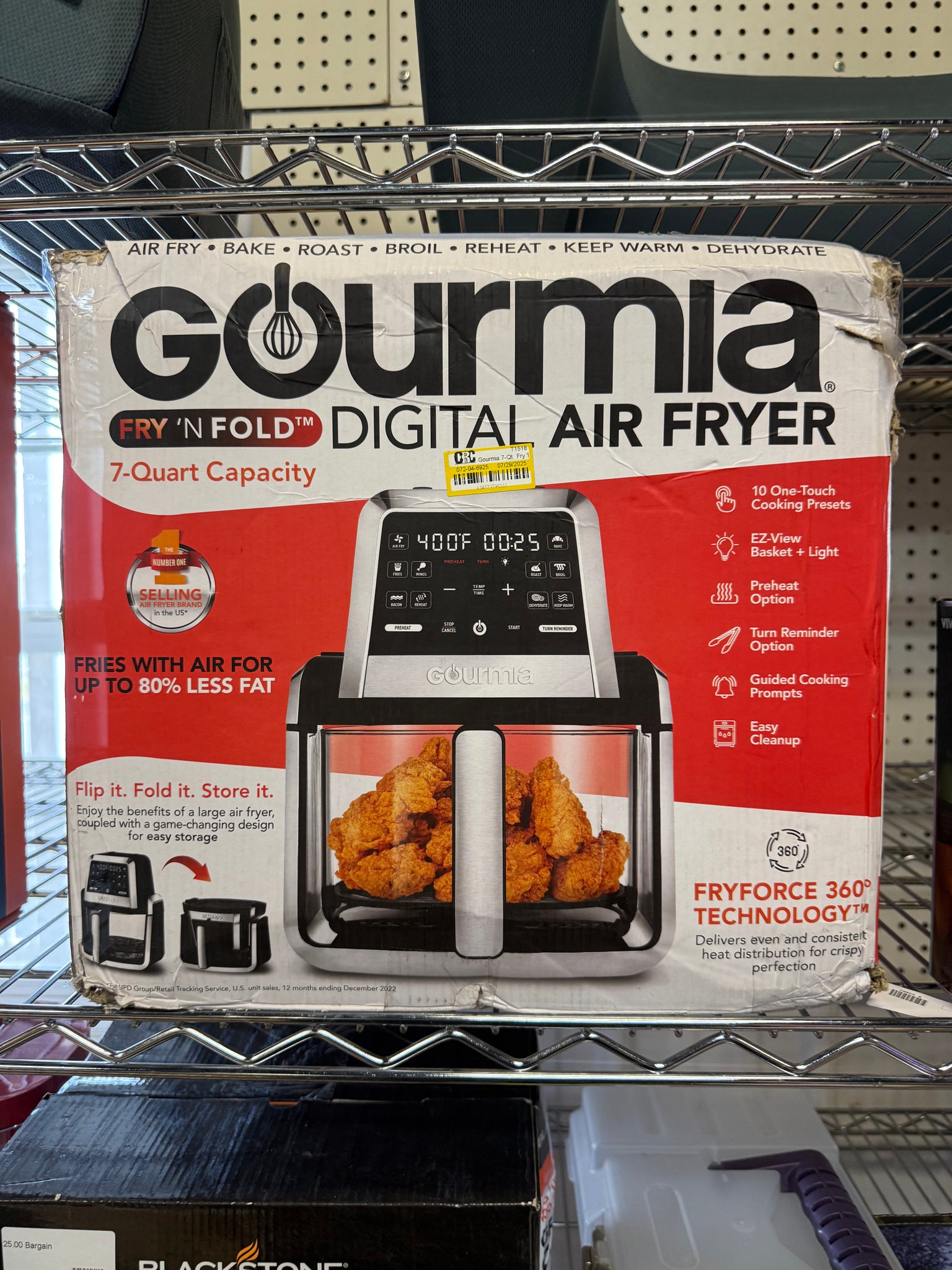 Gourmia 7-Qt. Fry ‘N Fold Digital Air Fryer with 10 Presets & Guided Cooking - Black: Stainless Steel, 1500W, Dishwasher-Safe!! NEW IN BOX!!