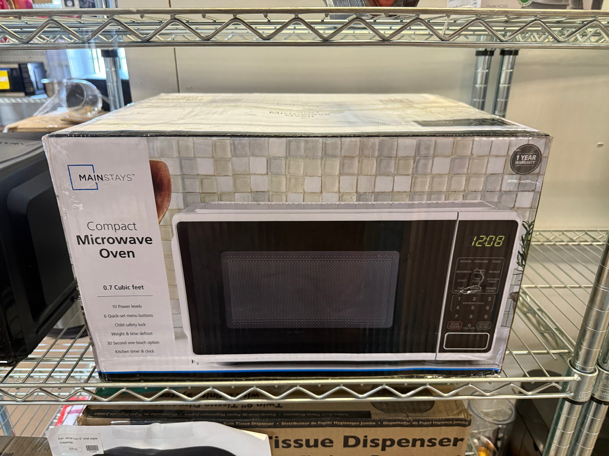 Mainstays 0.7 Cu ft Compact Countertop Microwave Oven, White!! NEW IN BOX!!