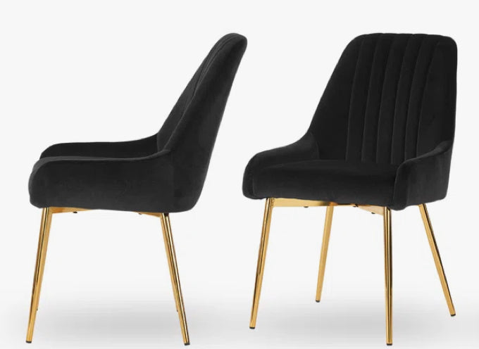 Maulsby Tufted Velvet Dining Chair, Black! (NEW - SET OF 2)