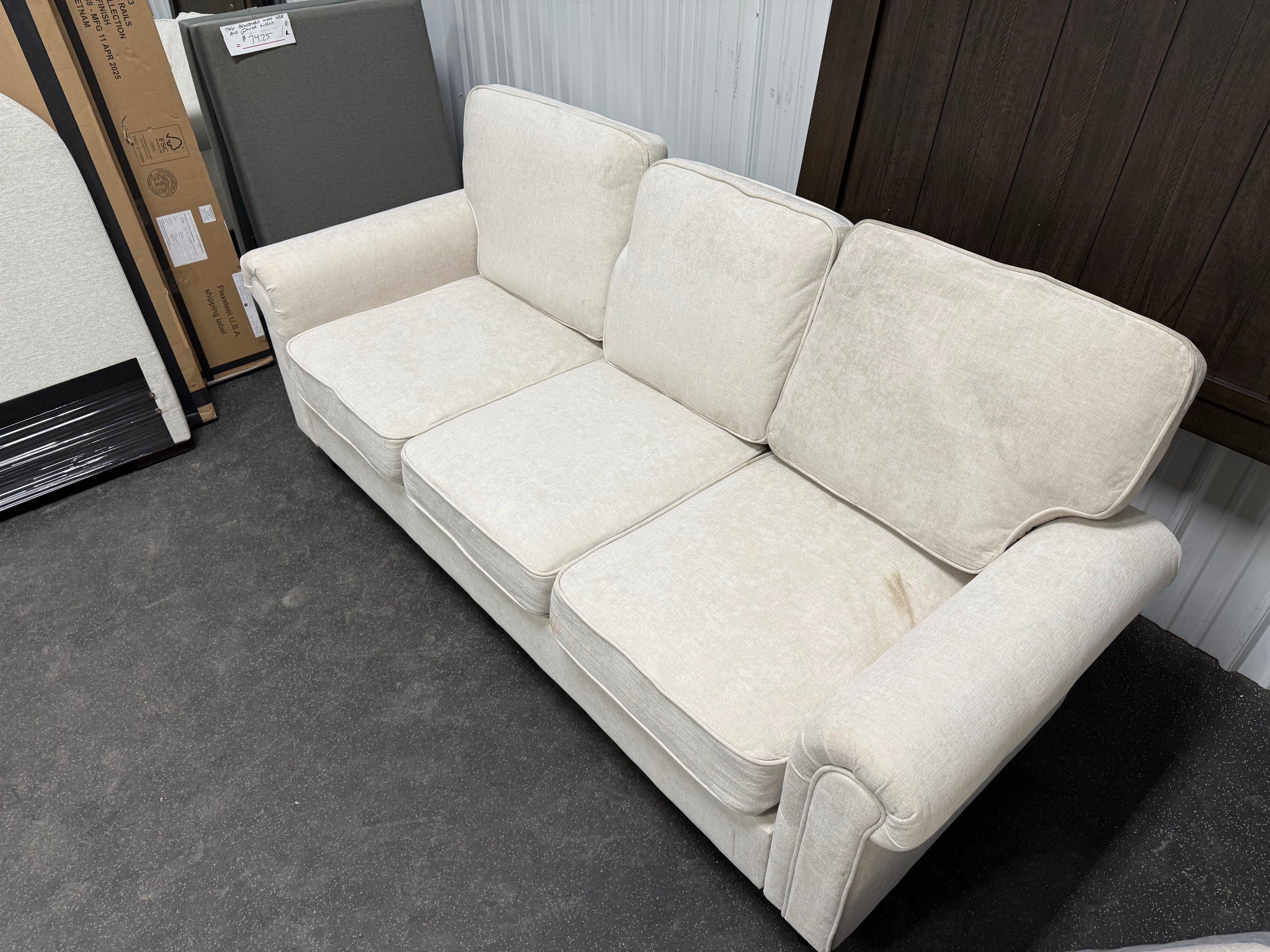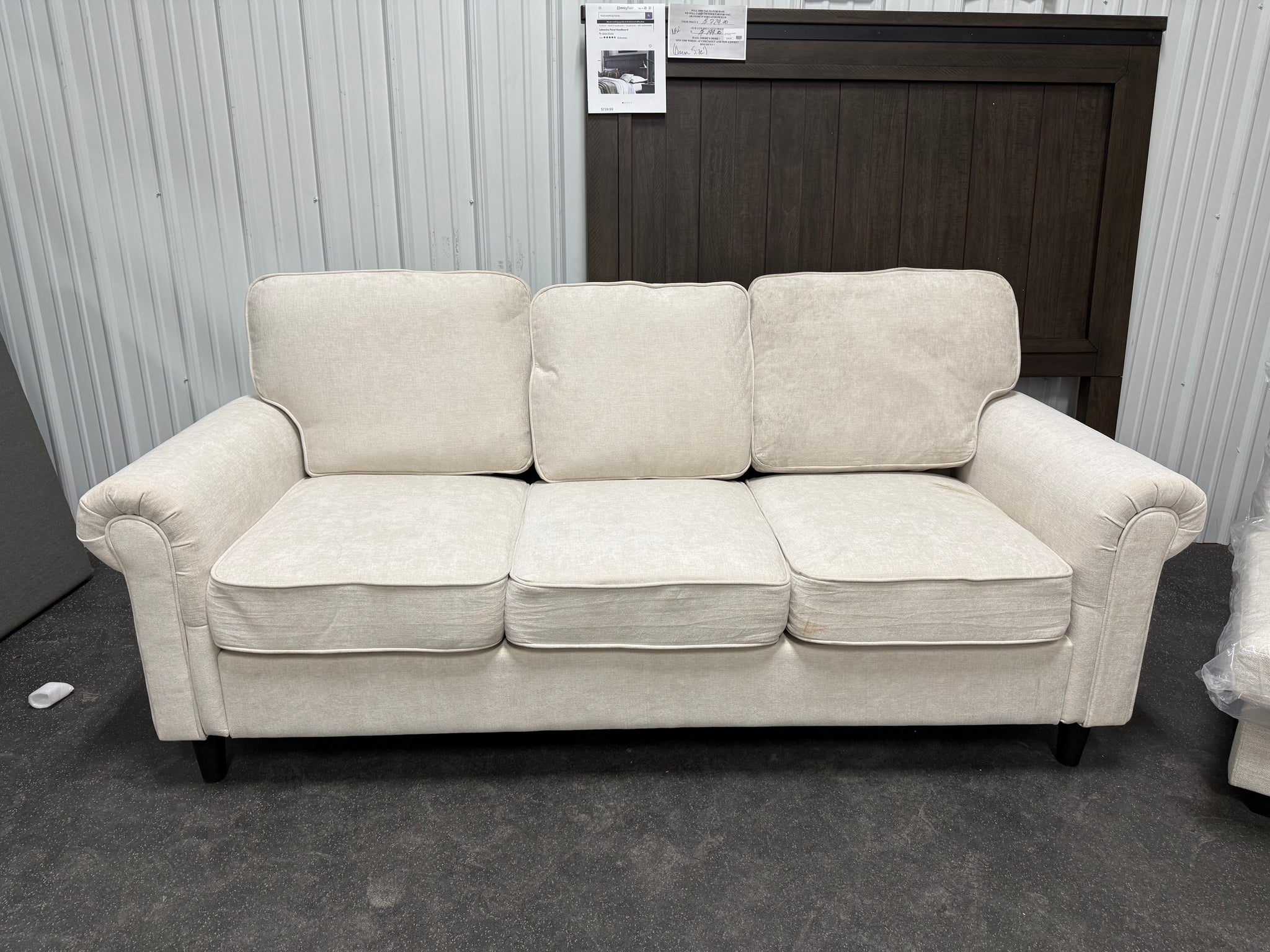 Modern Linen 3-seater Sofa!! NEW AND ASSEMBLED - DIRTY FROM SHIPPING)