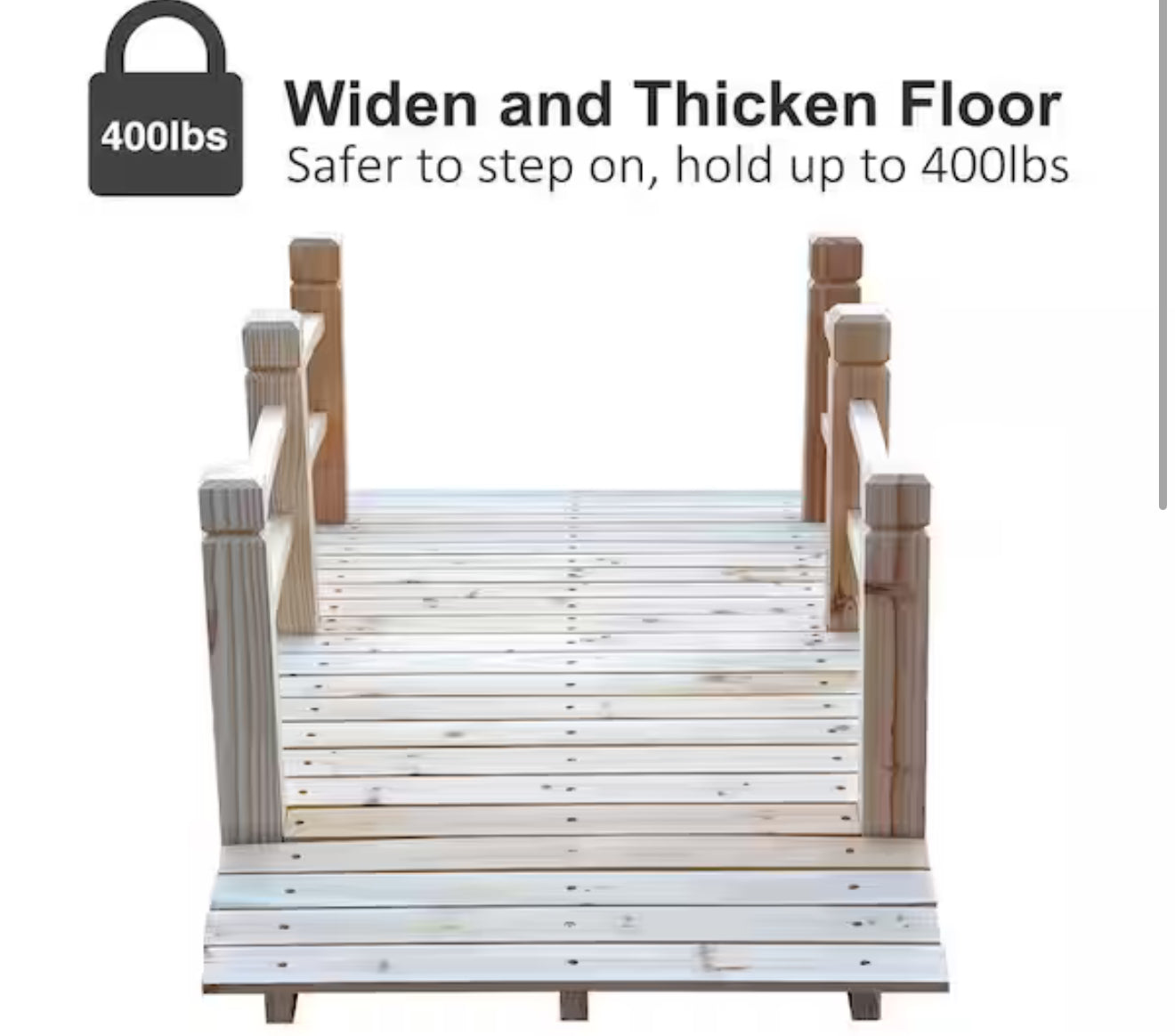 -STRONG WEIGHT CAPACITY: The durable fir wood construction of this wooden garden bridge is designed to hold up to 400 pounds of weight.