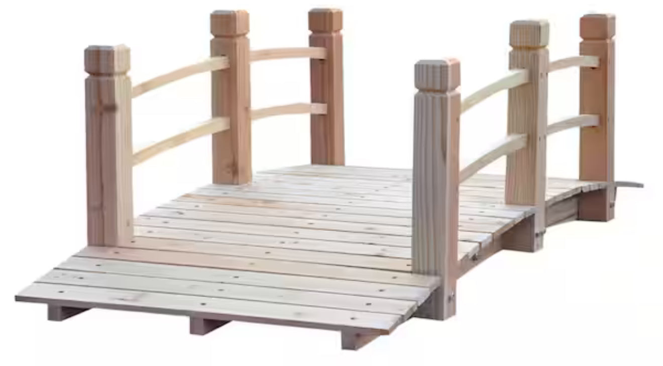 -SOLID CONSTRUCTION: The unvarnished wood of this bridge has a thick build capable of enduring weather while still providing a rustic natural look. Paint it, and you can customize it to suit its surroundings.
